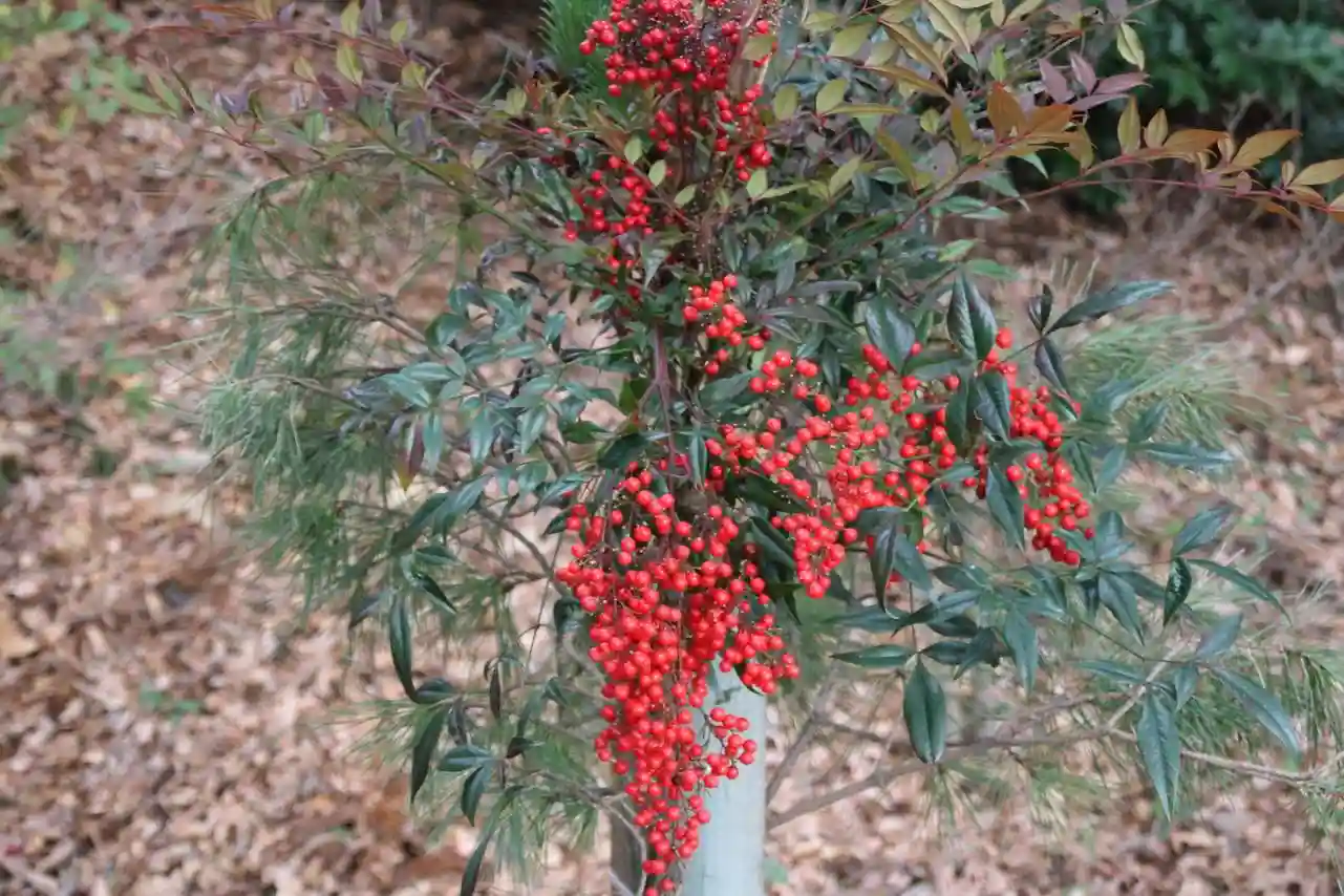 花手水、南天、松が飾られた参道を進み