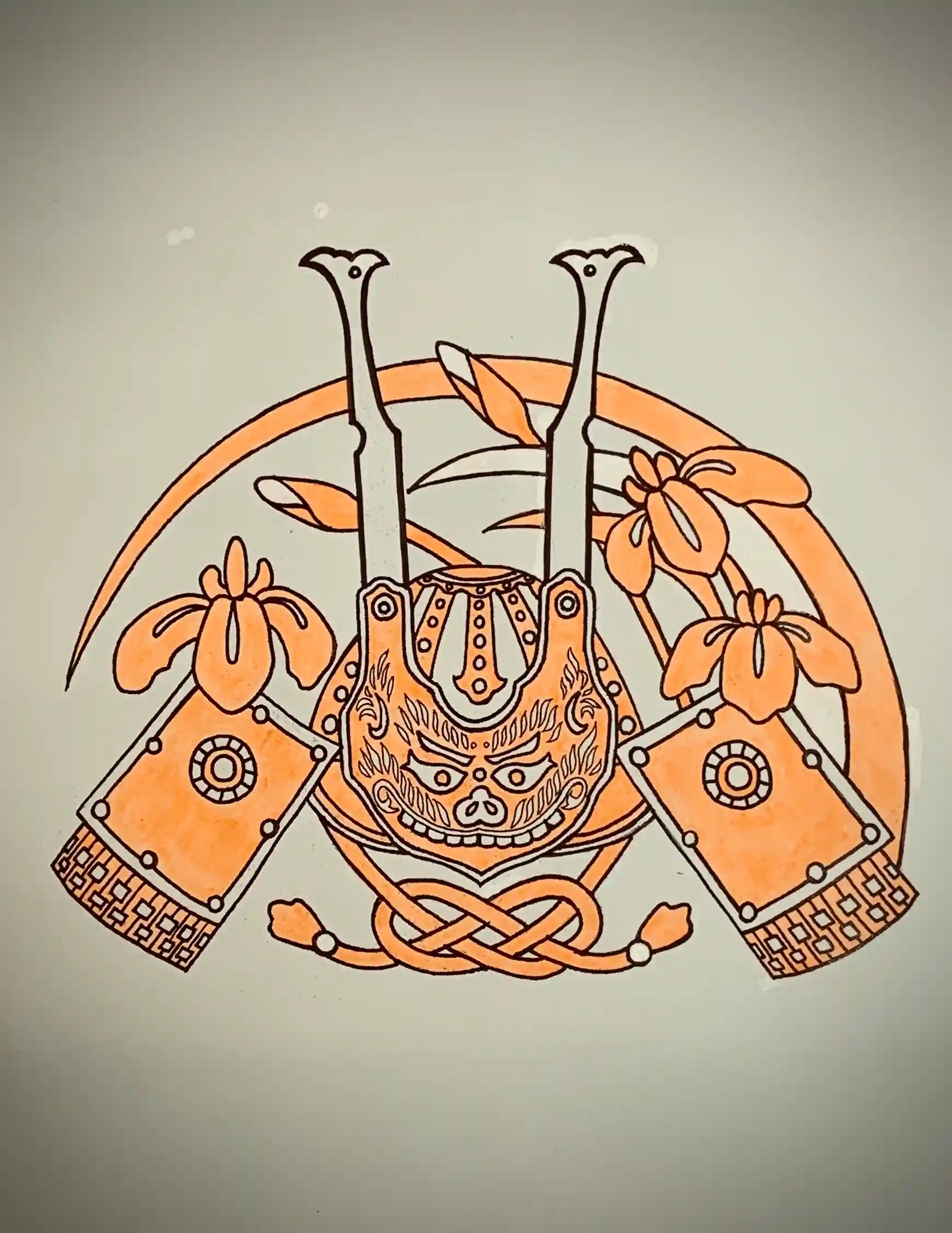 5月の御朱印に添えた「兜」の絵柄は、源太産衣(げんたがうぶぎ)という源義家公(八幡太郎義家公)に所縁のある鎧兜を参考にデザインしました。