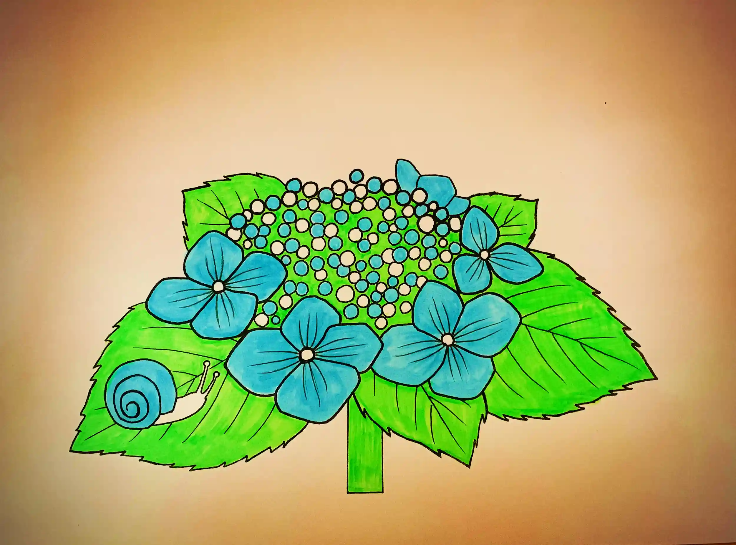 毎回、出来た下絵に色をぬって、それをもとに彫り分けてもらっています。今回の「額あじさい」の場合、色をぬった部分は彫らずにそのまま残していただき、色をぬっていない白い部分を彫っていただきます。黒い線も、線の通りに彫っていただきます。