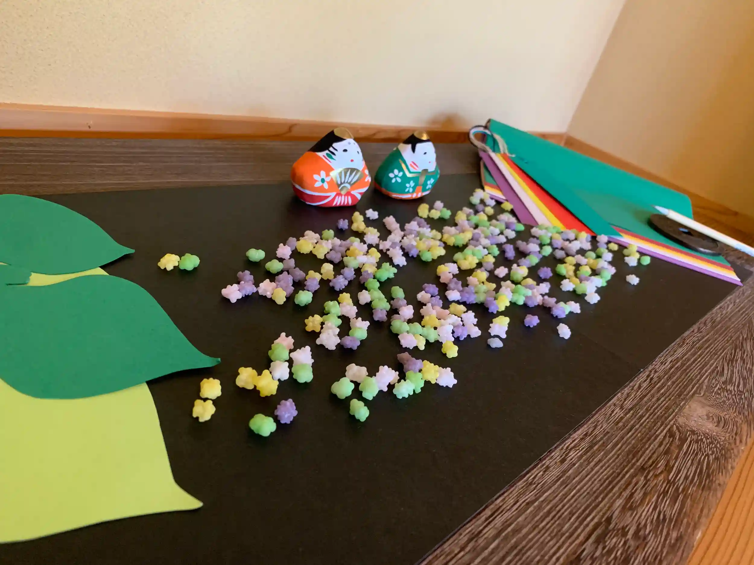 風鈴用の「五色の短冊」を準備しています。