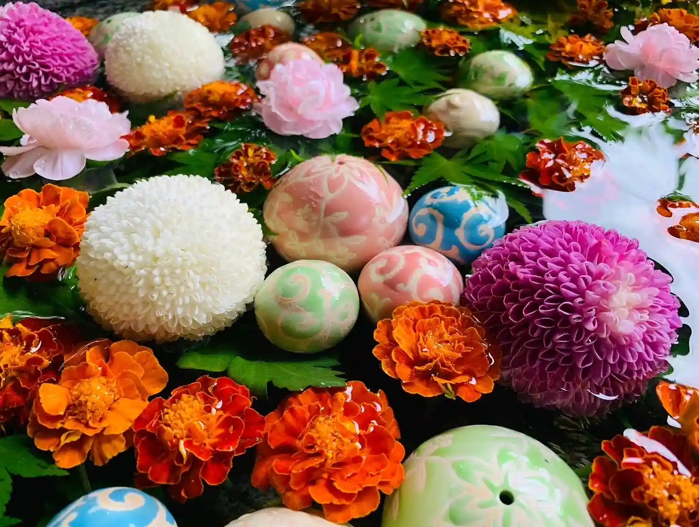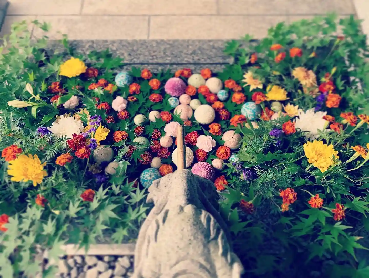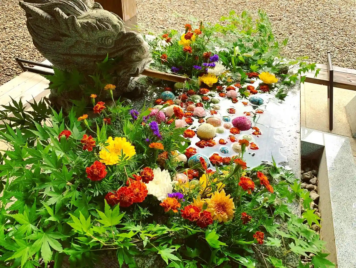 花手水のお写真にさり気に龍神さまの頭がチラリ