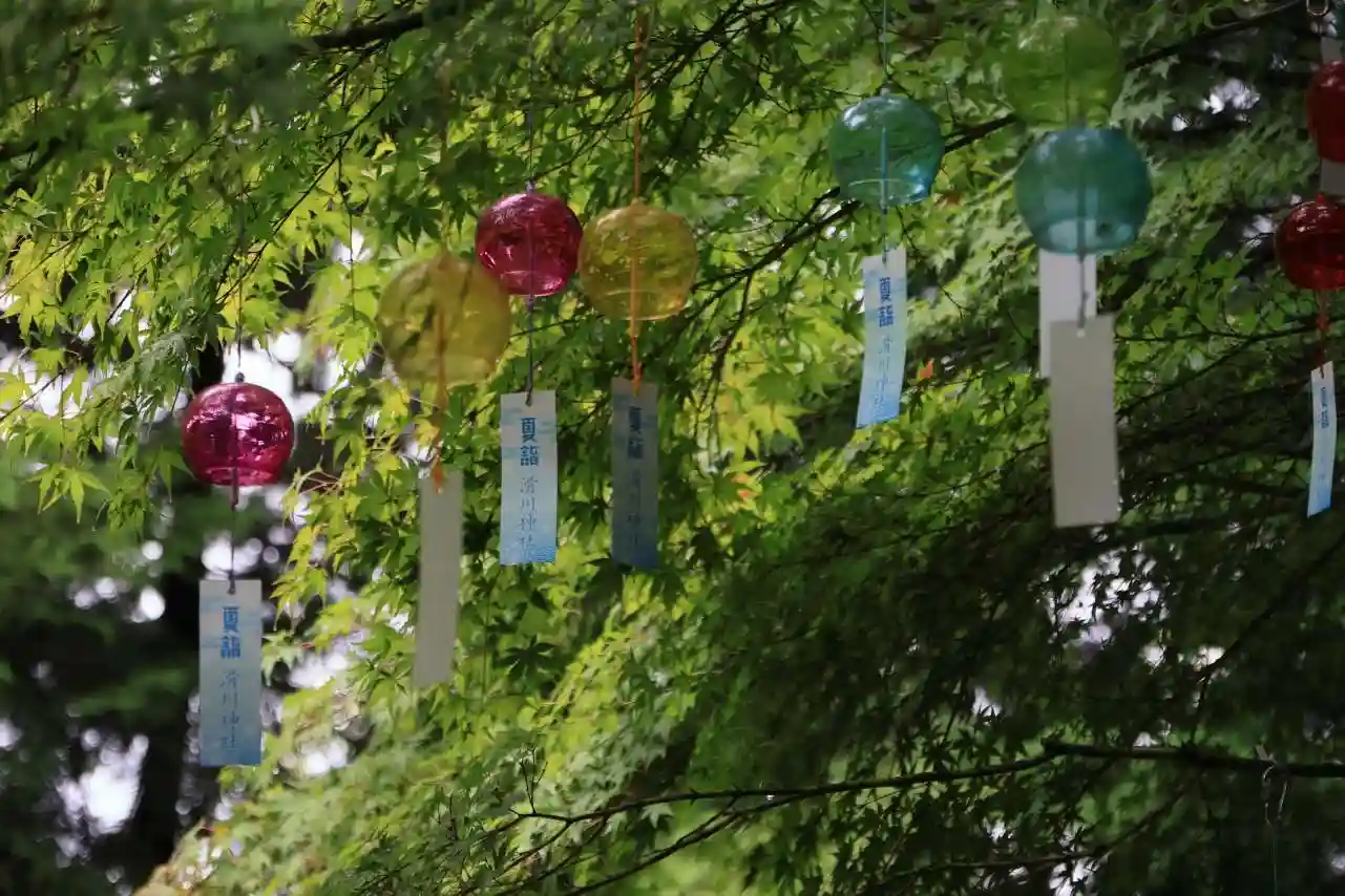 6月下旬から七夕まつり期間終了まで、祈願短冊を境内に準備します。願いごとを書いて専用の箱にお納めいただければ、神職が笹飾りに結びつけます。