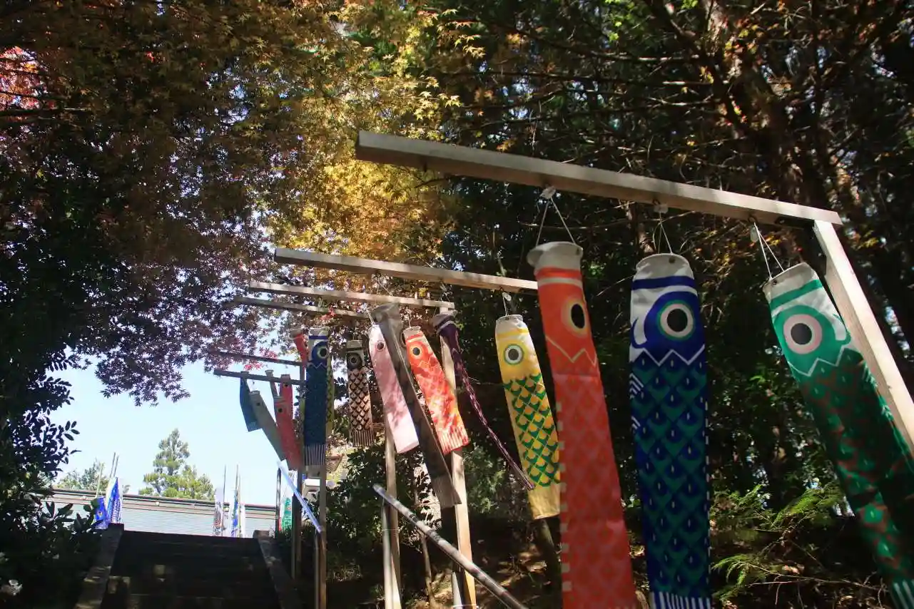 鳥居には鯉のぼり、おみくじは桜みくじ、社殿は七夕🎋仕様、春から夏の季節感が1ヵ所で楽しめます👍️