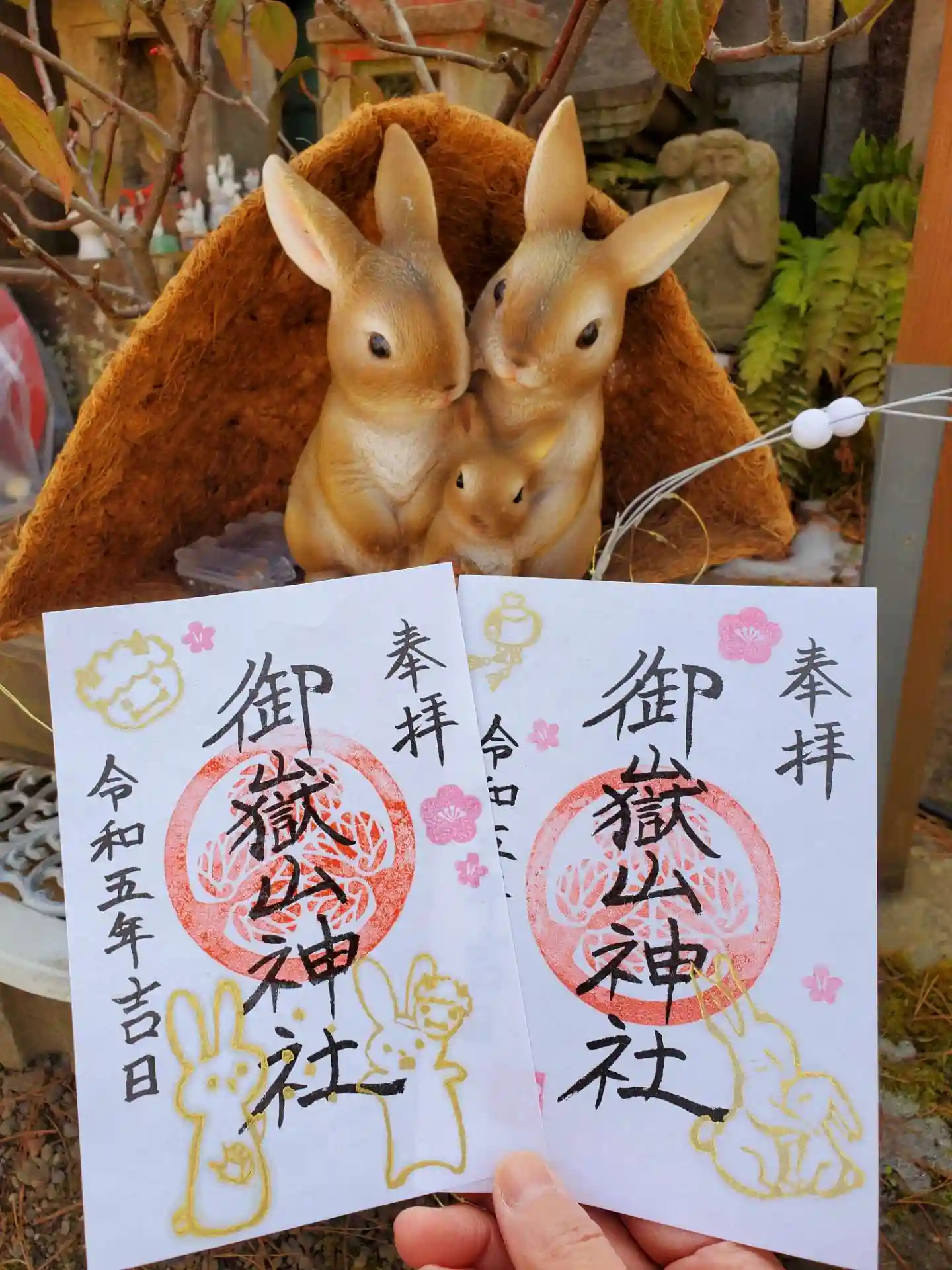 庭には可愛いウサギちゃんの置物🐰🐰🐰