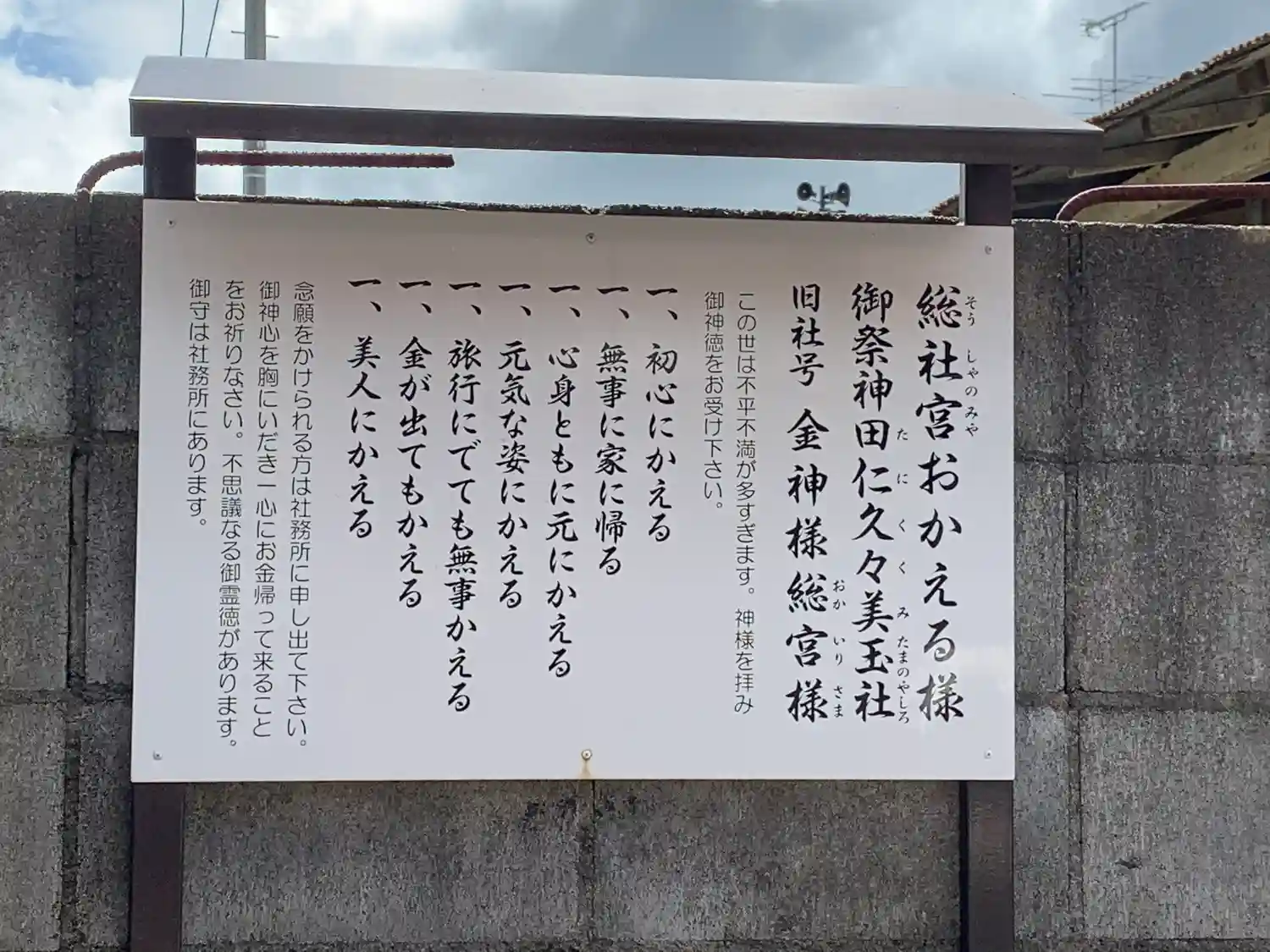 | ご祭神 | 天御中主神高御産霊神、大國主命、少名彦命、猿田彦命、豊秋稲荷大神 |