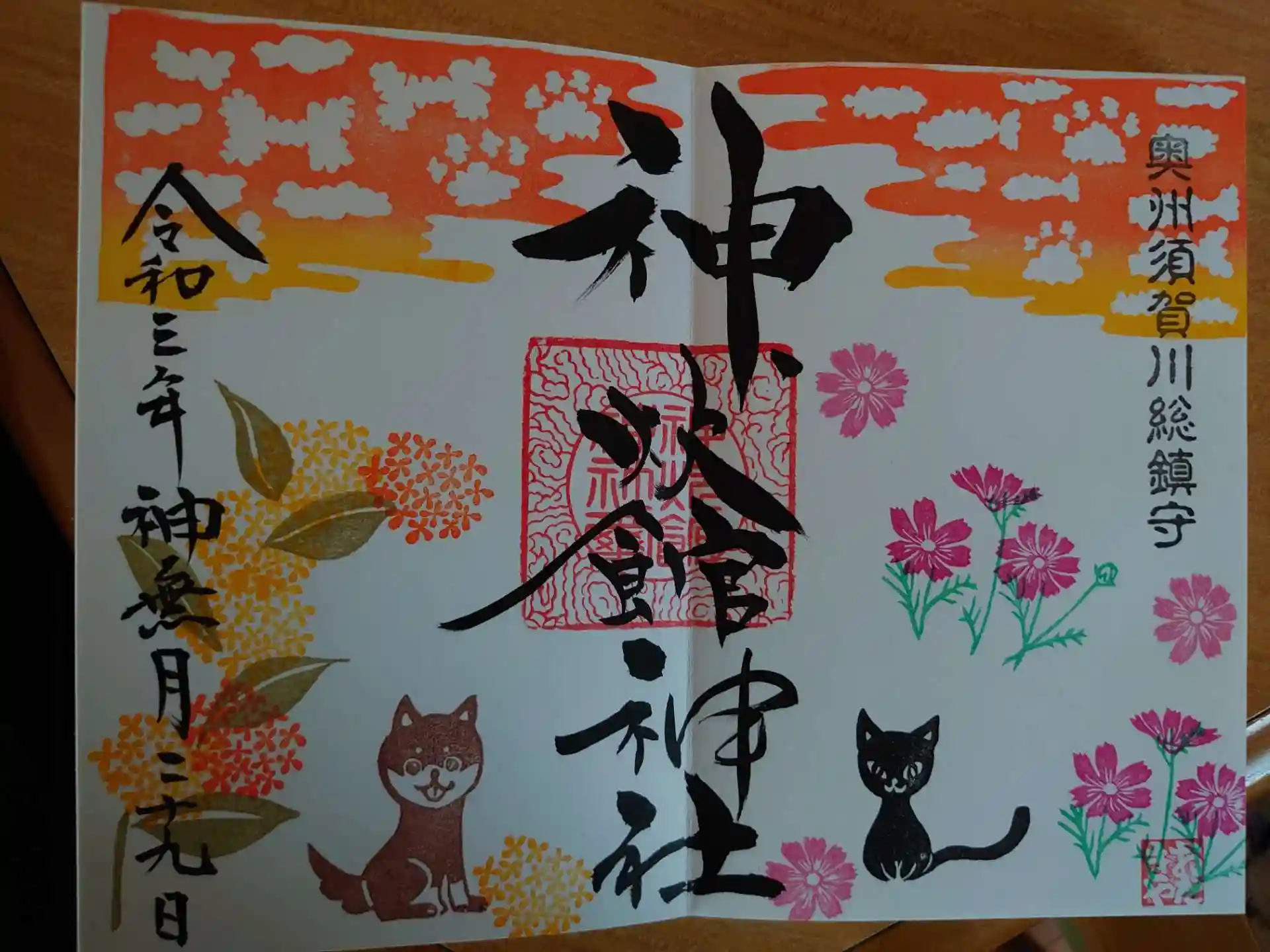 10月の御朱印を頂きました。どーしてもこの見開きの御朱印がほしくて。でもギリギリになってしまいました💦💦風が強かったです。境内の紅葉が始まり出してました。🍁