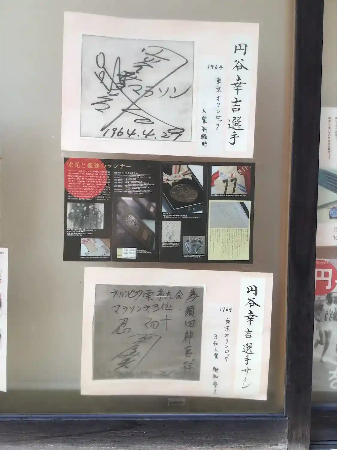 授与所に須賀川出身の1964年の東京オリンピックマラソン銅メダリストの円谷幸吉氏のサイン色紙が掲示されています。五輪前に必勝祈願、五輪後にお礼参りをしています。