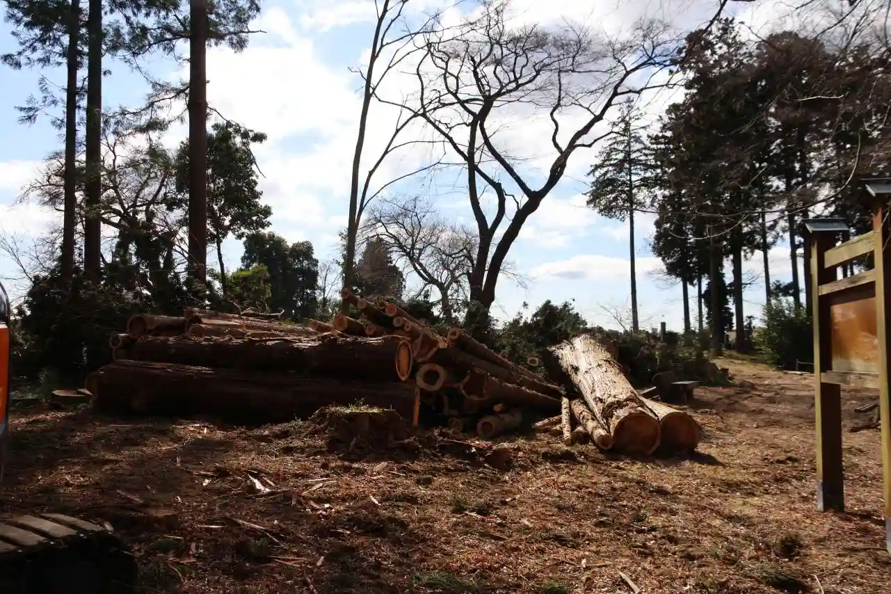 伐採されて明るい桜の森に