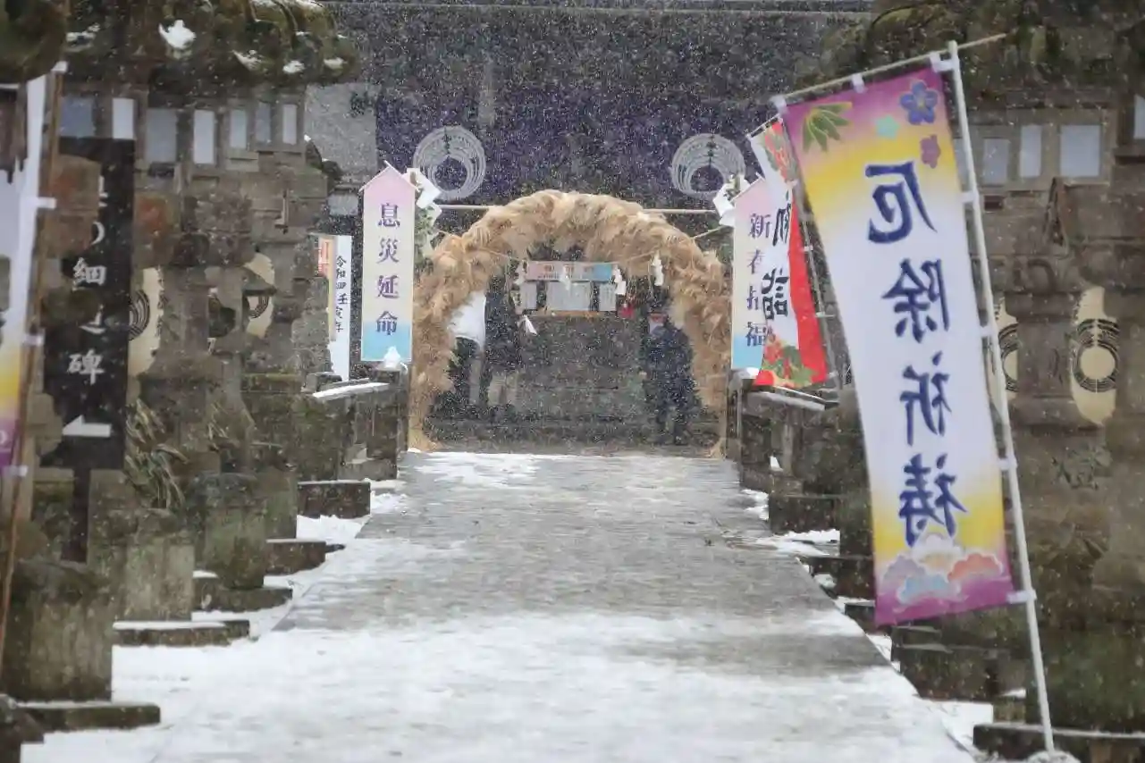 雪降る中の初詣