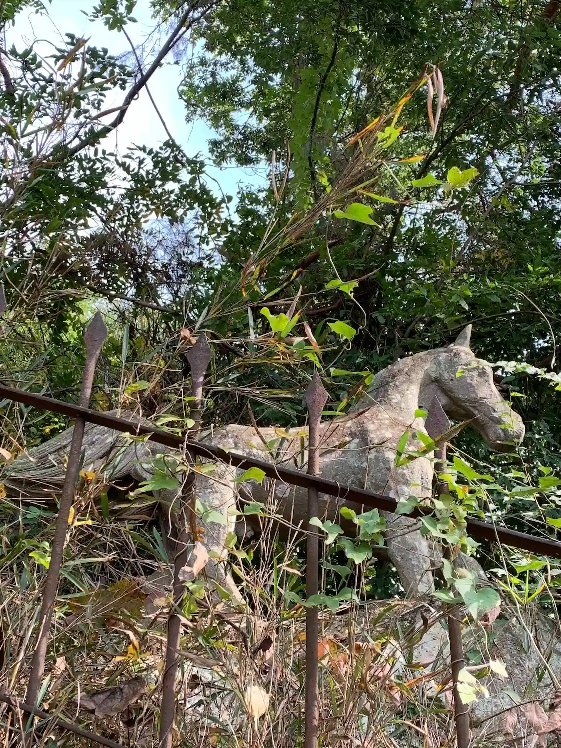 社殿へ続く階段横に石像の馬がいて、登ってくる参拝者を出迎えてくれます。