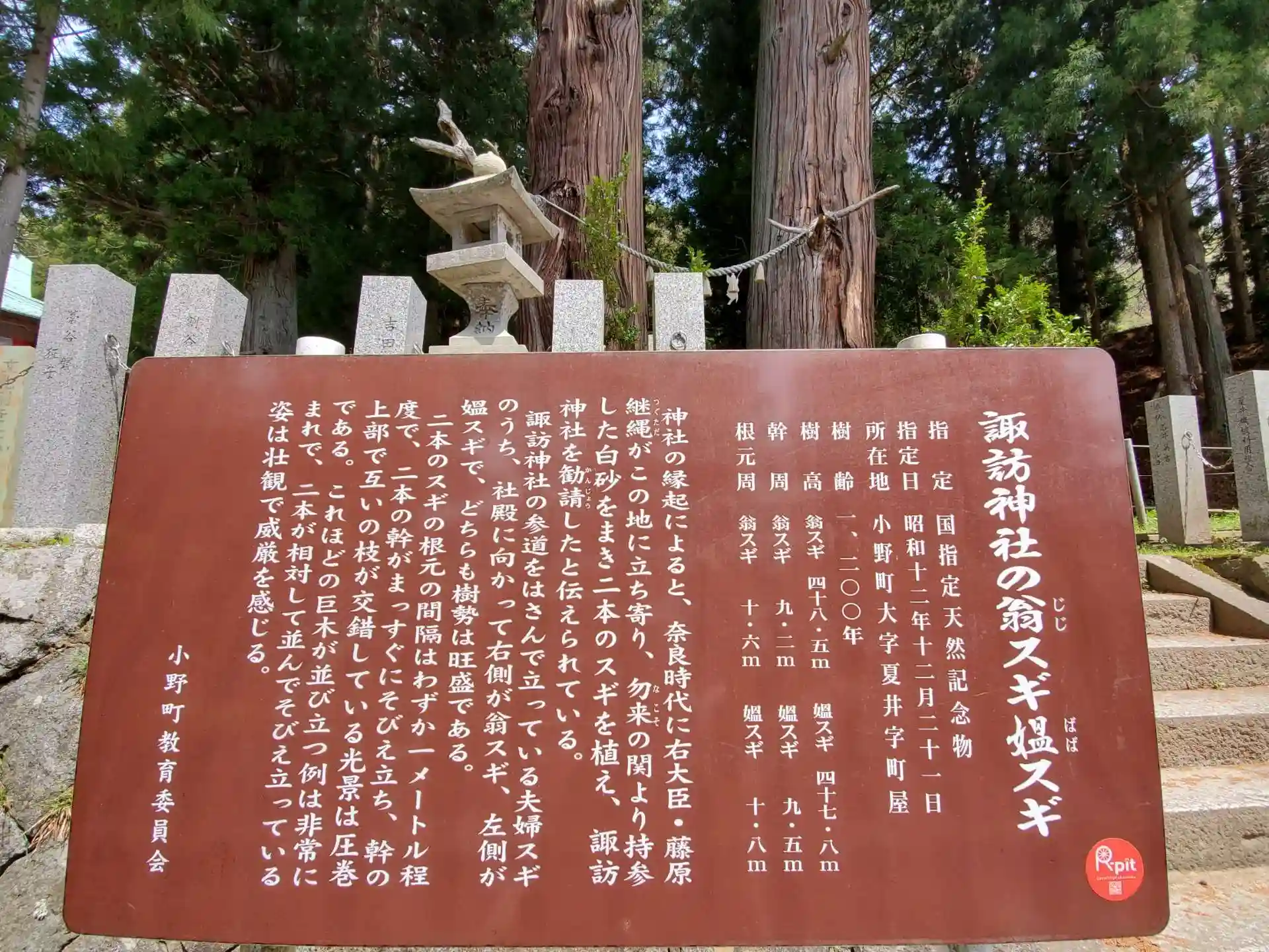 樹齢1,200年を誇る大きな杉が祀られています。