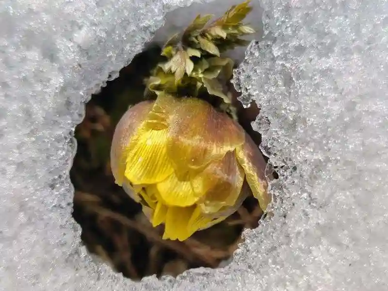 関場神社は雪村庵に行く道の高台にあります🧏🏻♀️ 階段が急で登るのに大変です 🤦🏻♀️ でも透過光に輝く福寿草は可愛いです💖 雪からお顔を出してるのもいいです👩🏻 📸2025年2月11日、2025年2月26日