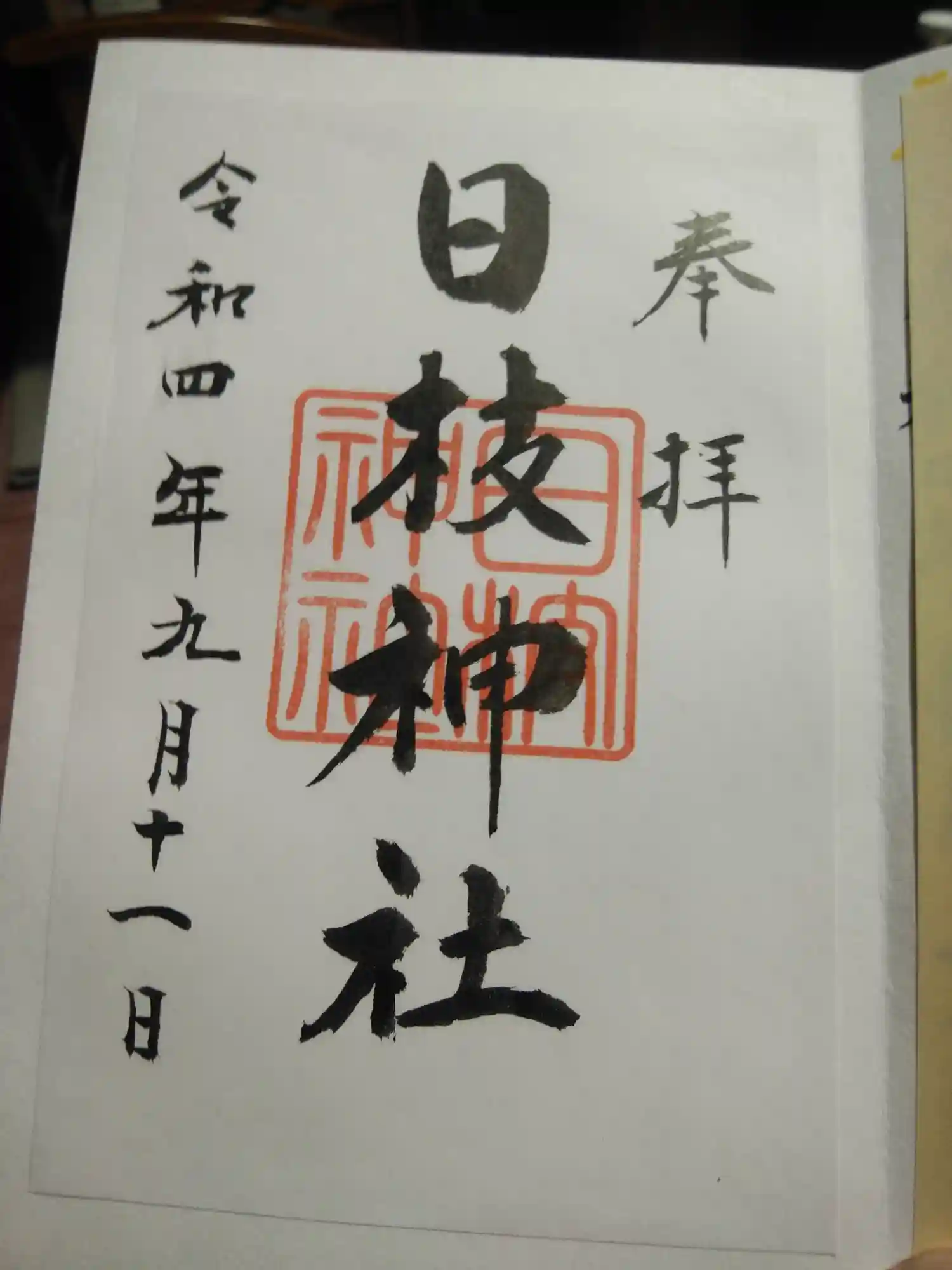 日枝神社の御朱印 写真一覧