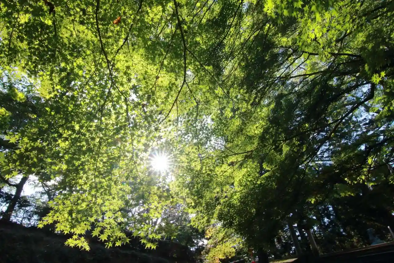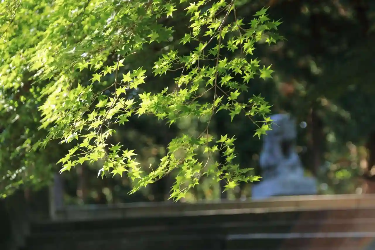 境内の楓はまだ緑ですが