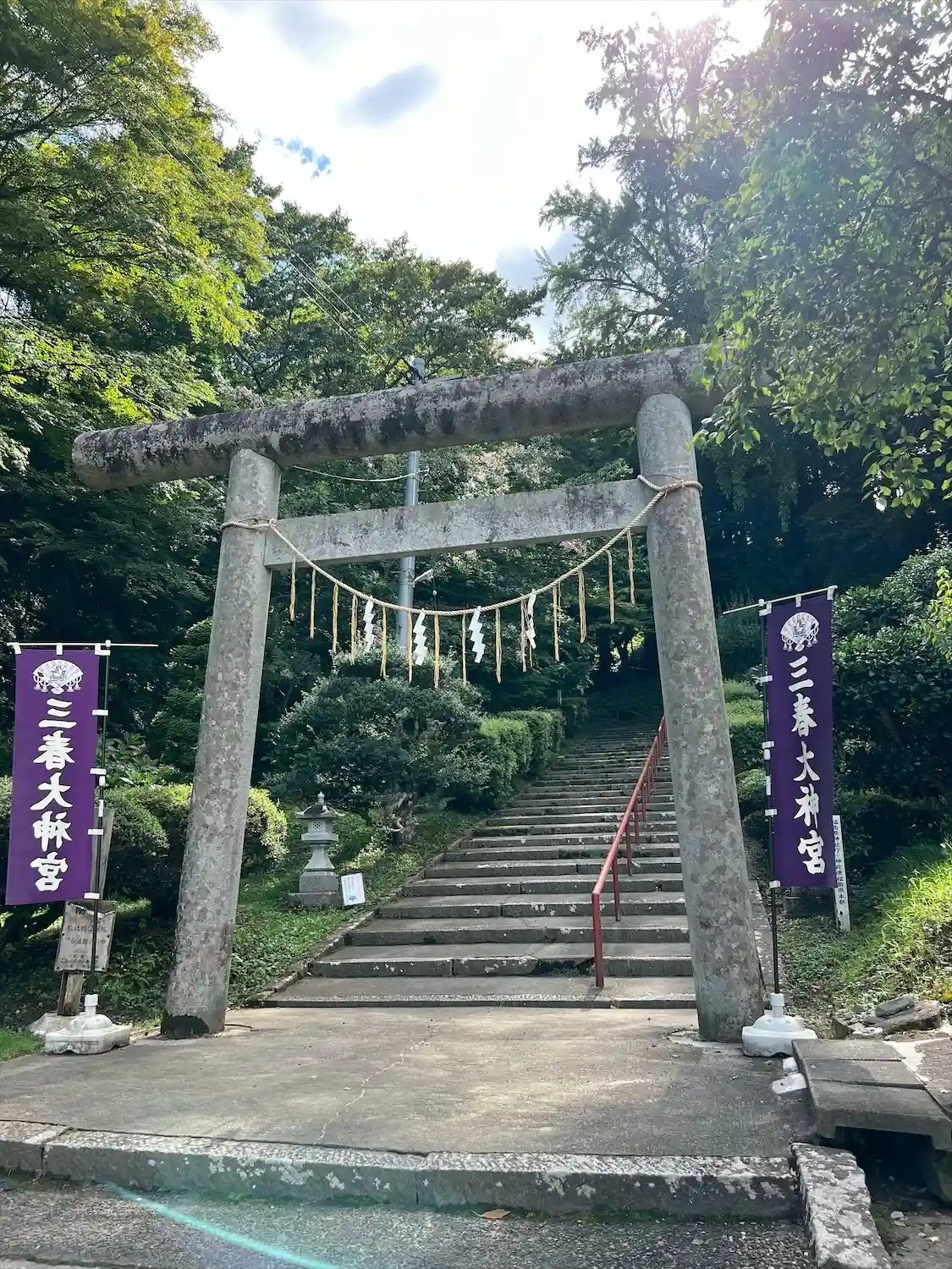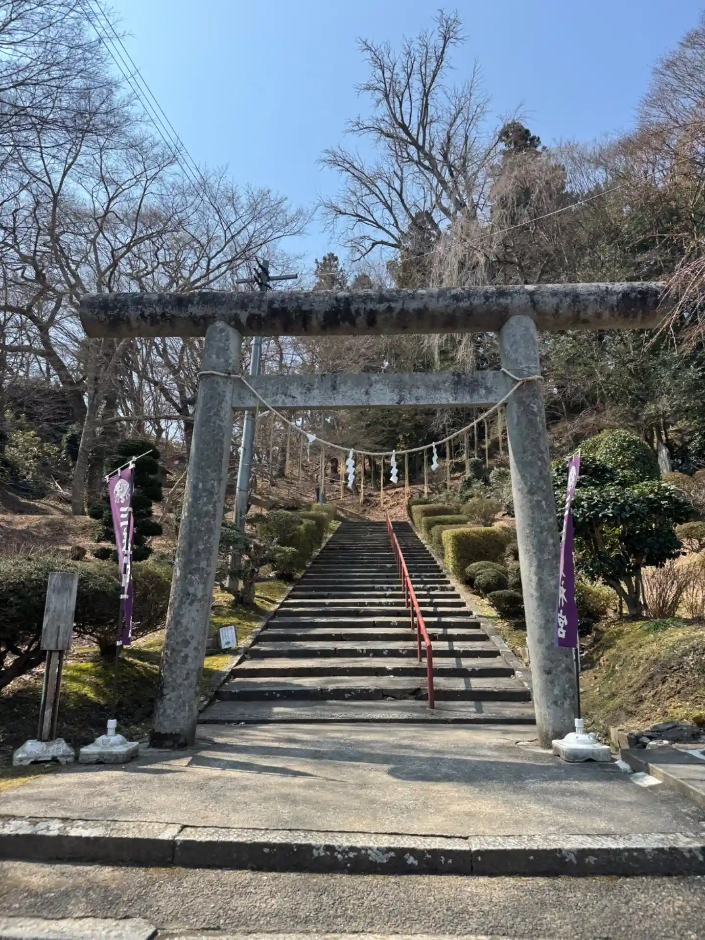 鹿島大神宮から車で10分ほどです。きつい石段です。