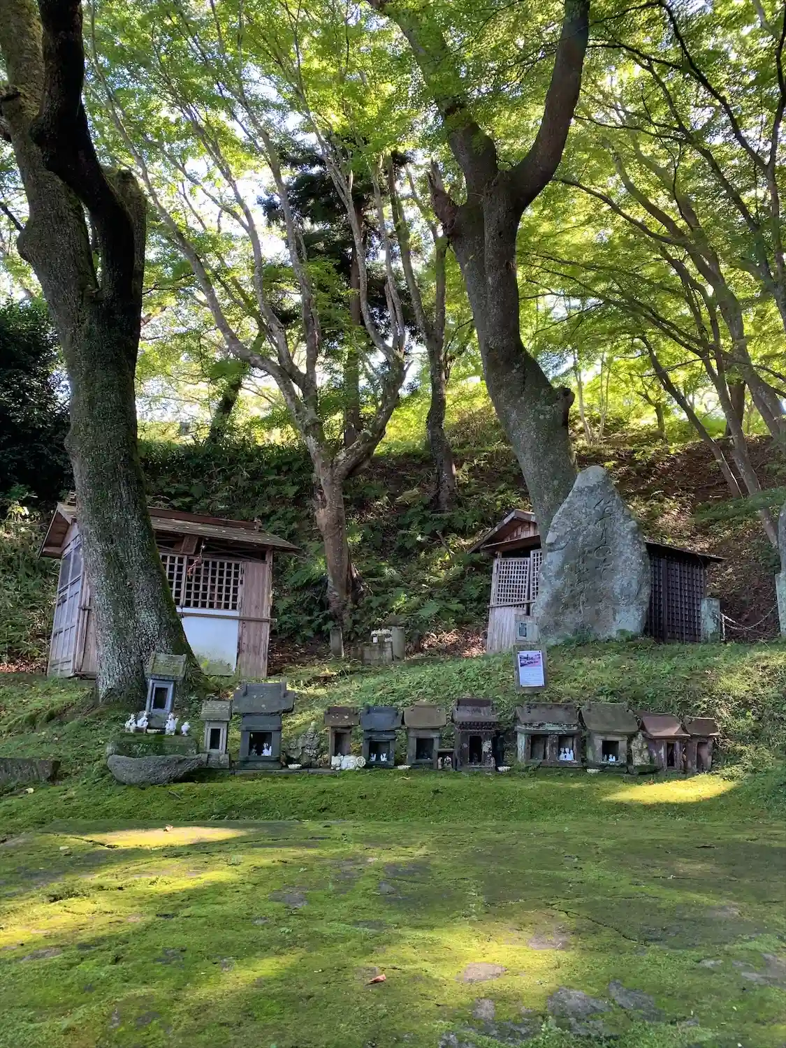 境内の楓はまだ緑ですが