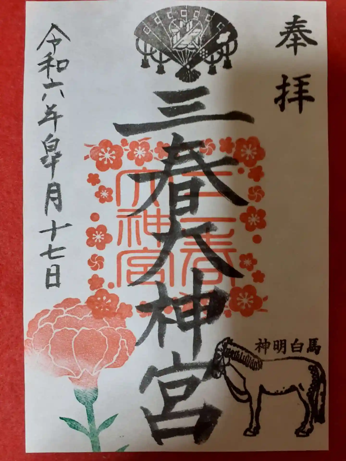 今月の御朱印は、直書きで頂きました。