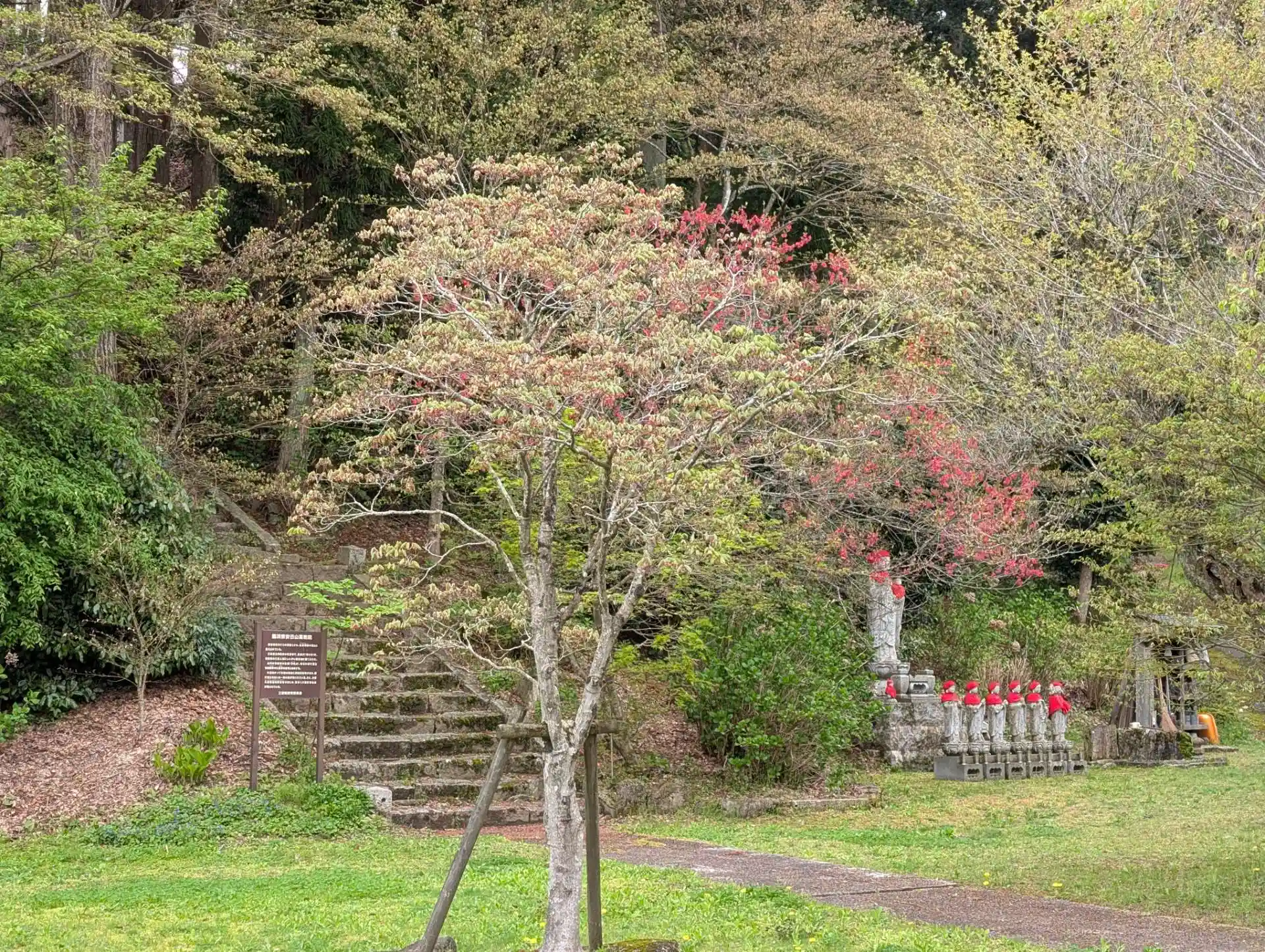 曇り空で風もあり、桜は大分散りつつありますが、草花や鳥のさえずりが心地よいてす。仏様、秋田家歴代のお墓に手を合わせました。ありがとうございました。