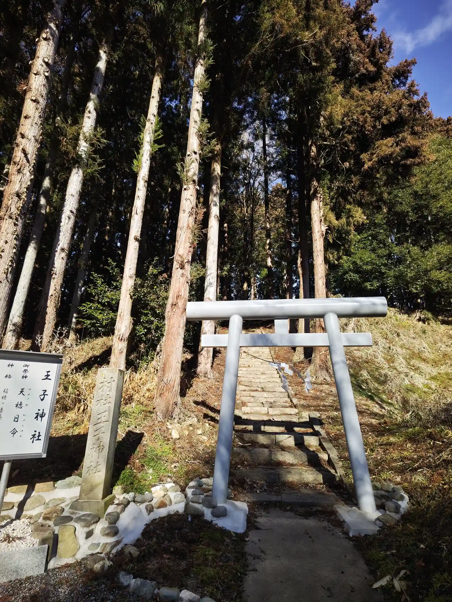 こんもりとしたスギ林の中に王子神社が鎮座する