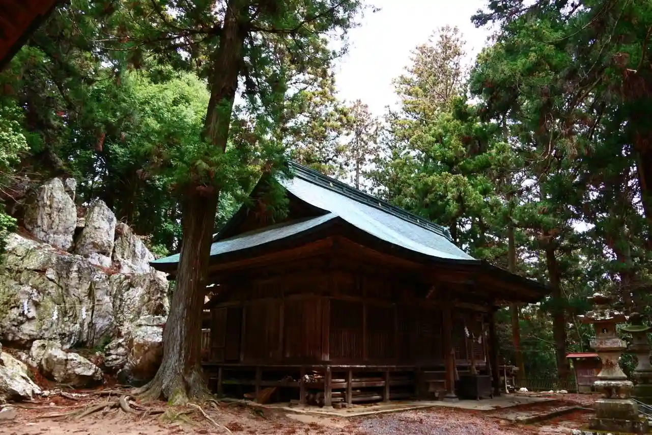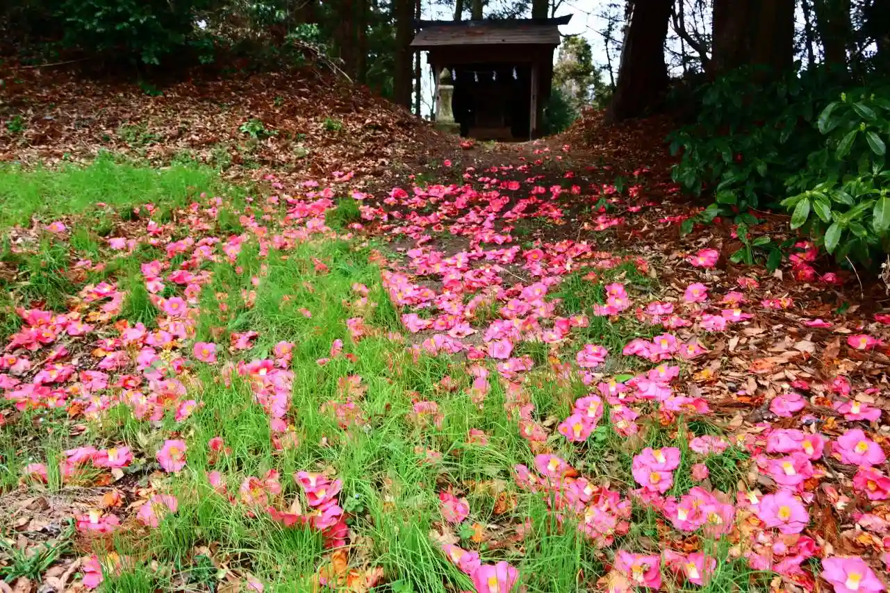 神楽殿の脇を通って、さらに鎮守の森を進むと、ペグマタイトの間に境内社や地域の人たちが信仰する小さな祠がたくさん鎮座しています。季節の好いときにはぜひ散策してください。