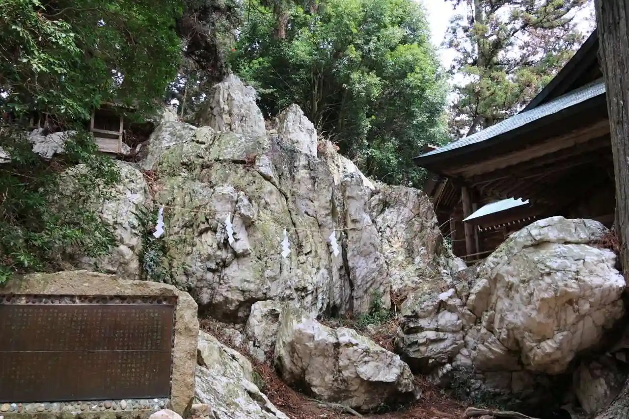 ご神体である国指定の天然記念物、ペグマタイト岩脈について