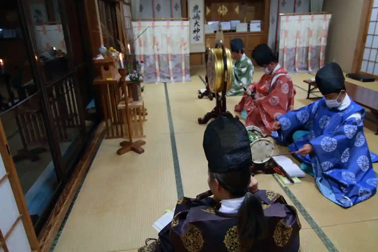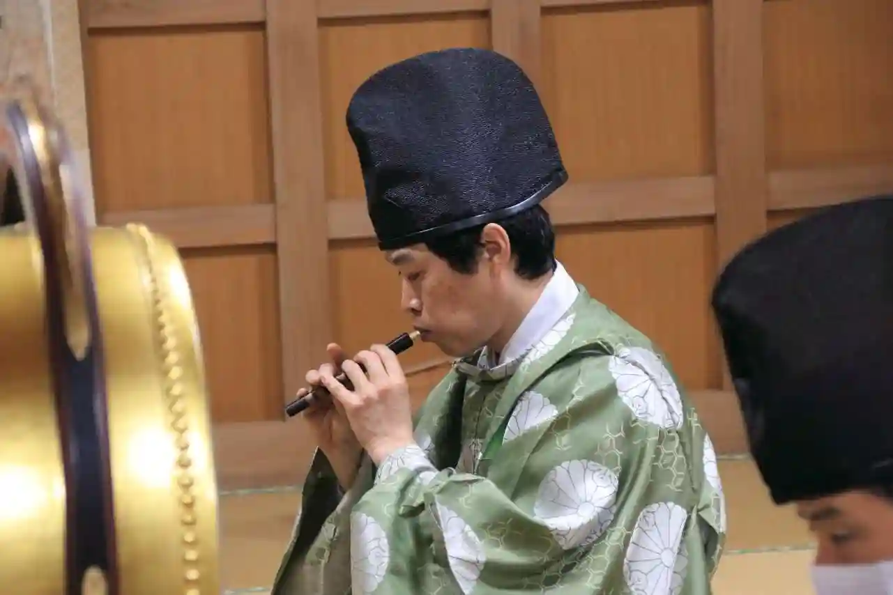 社務所では【令和3年鹿島大神宮お月見雅楽練習会】が開かれており