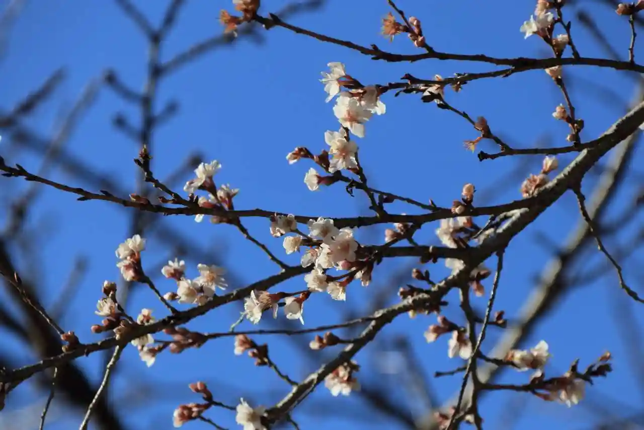 境内の入り口には華やかに桜が咲き