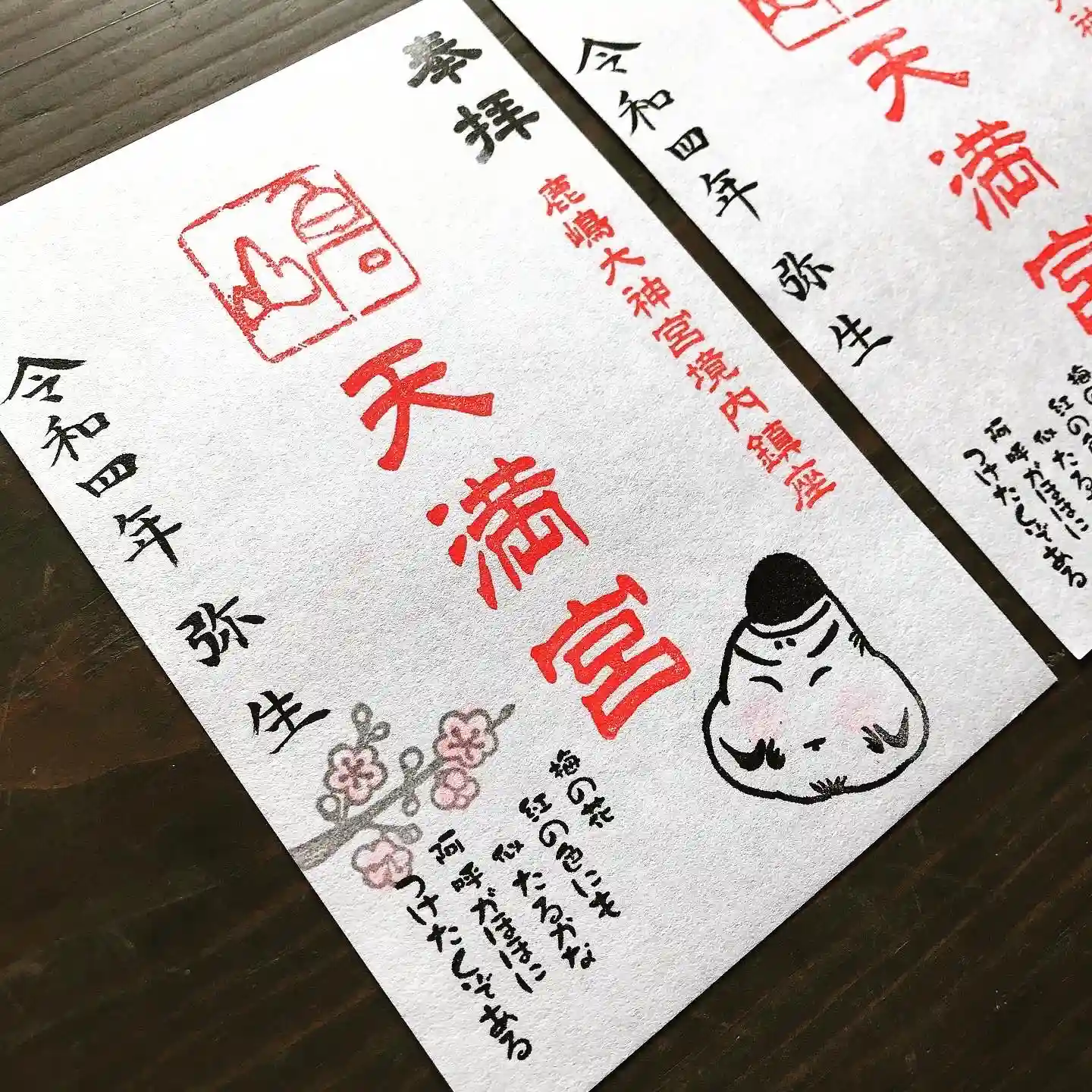​​御朱印に添えたこの一首は、菅原道真公が5歳のときに詠んだ歌といわれています
