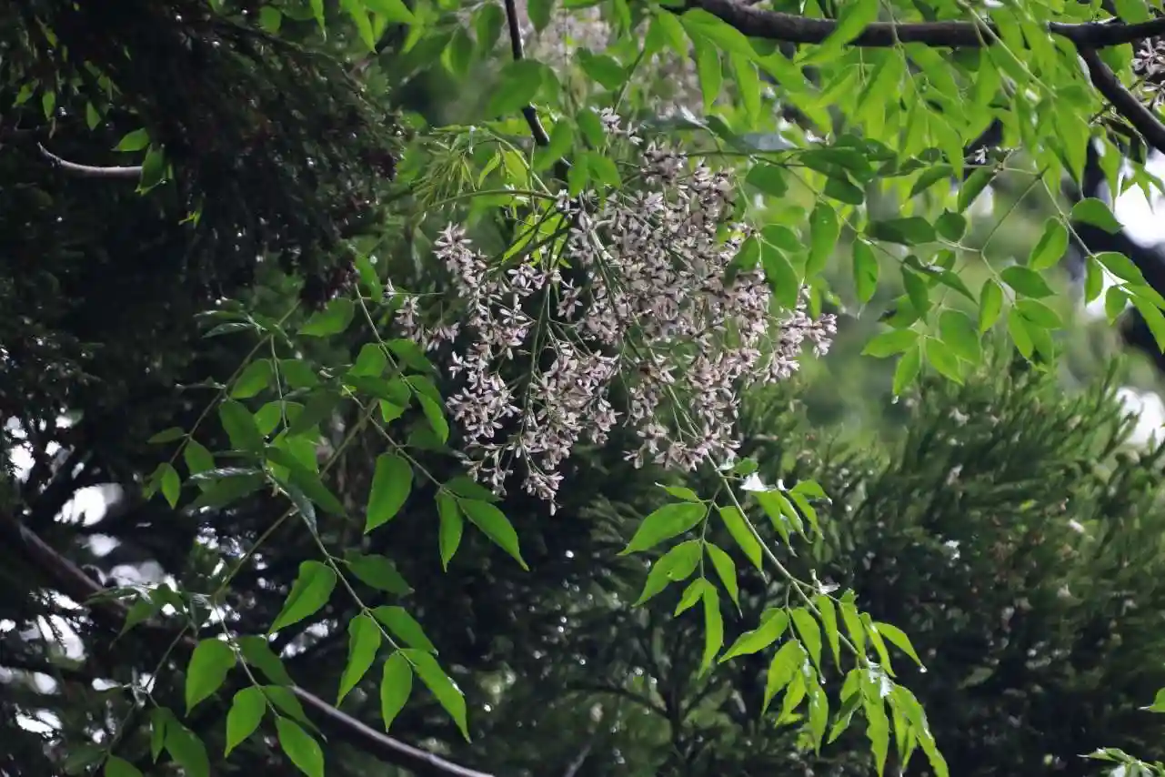 四季桜の上にはセンダンが