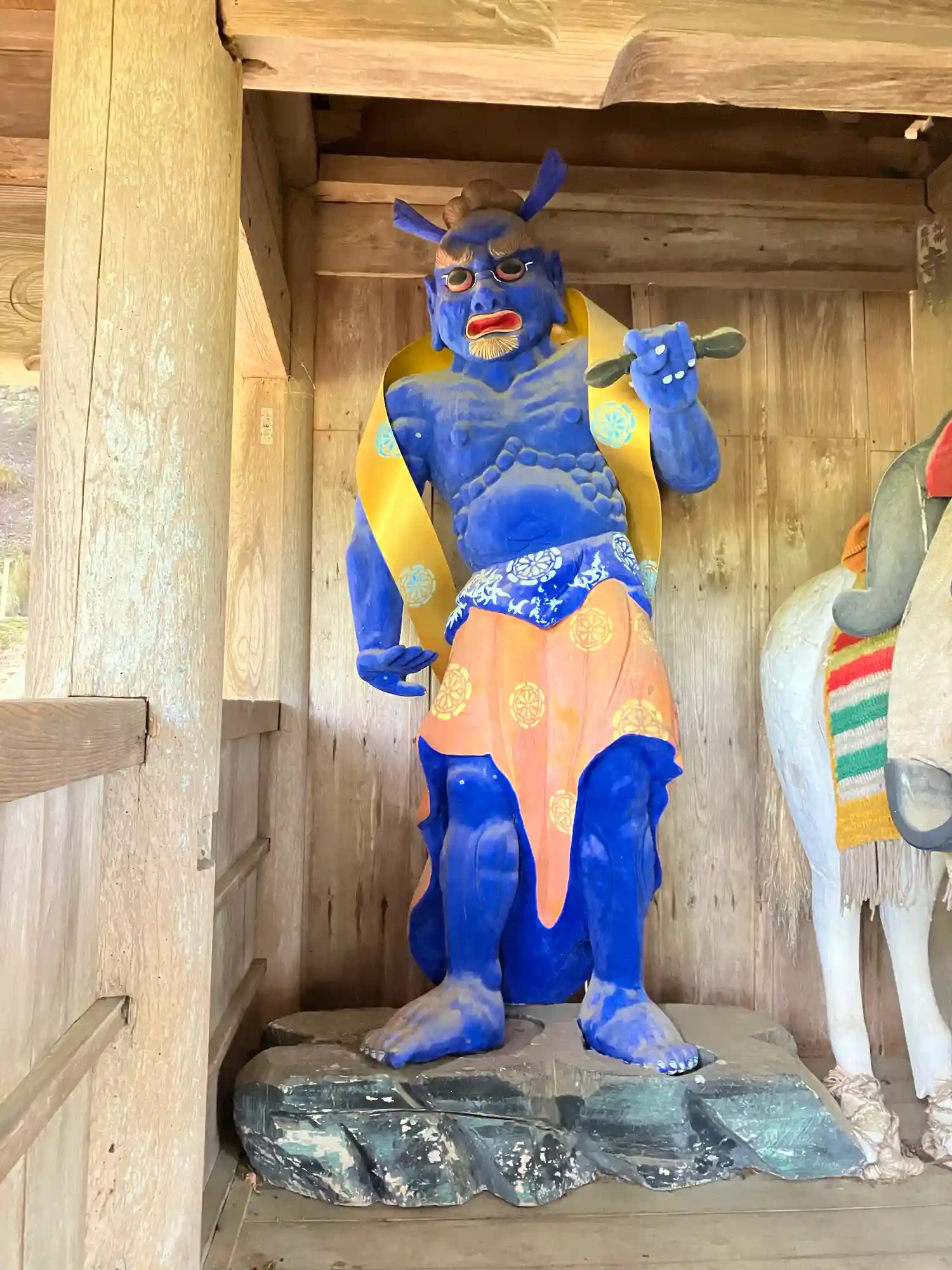 山門には青の仁王様。