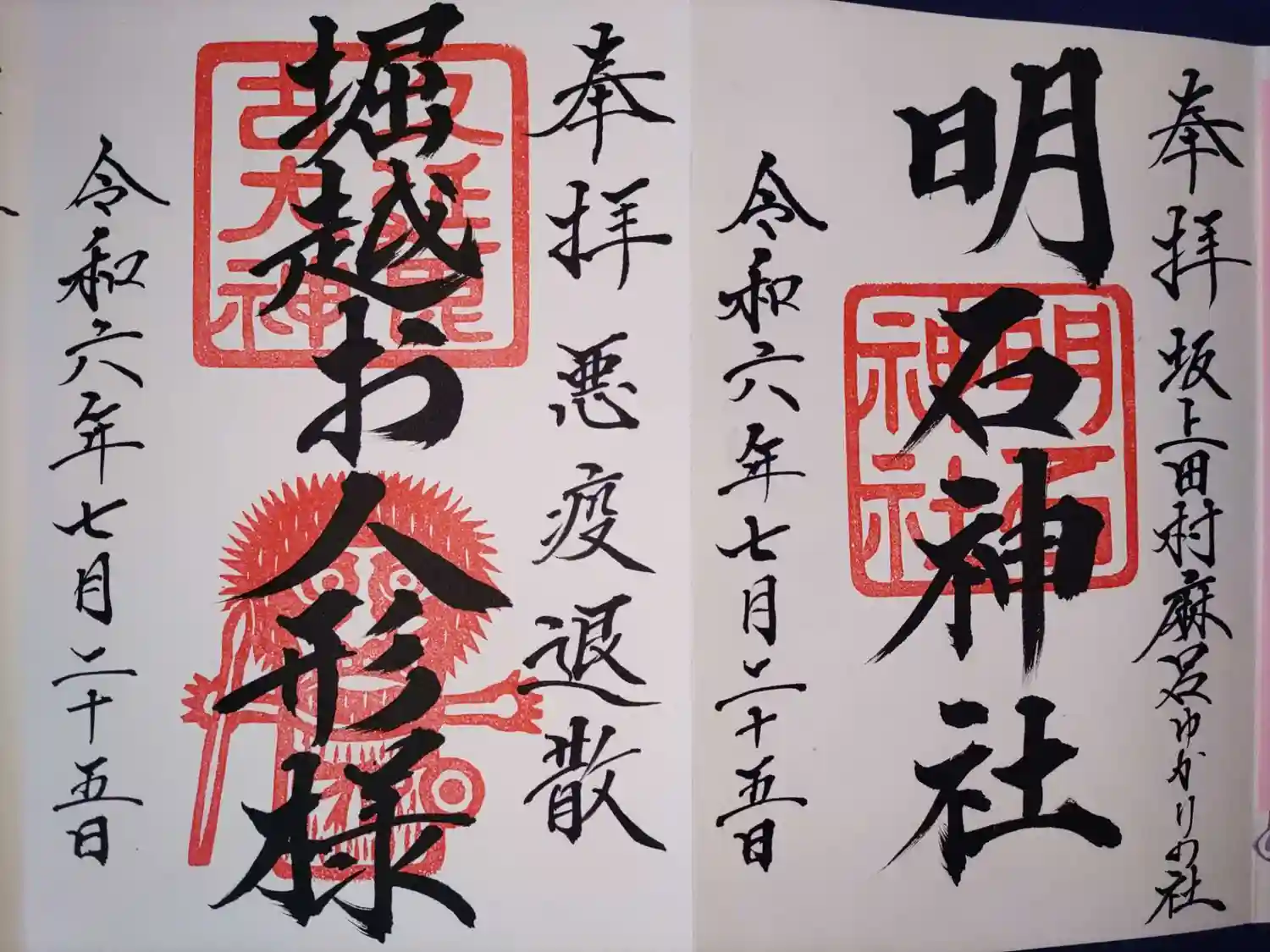 7/25神祇遙拝殿さんへお参りして御朱印帳に直書きして頂きました。