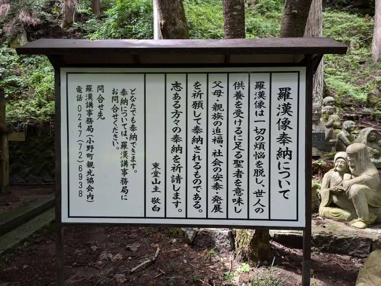 羅漢様が奉安され鎮座しているのは、東堂山満福寺境内の観音堂の脇。 昭和60年から奉安が始まり、現在500体以上(令和3年6月現在 508体)のさまざまな表情をした個性あふれる羅漢様を見ることができます。(引用)