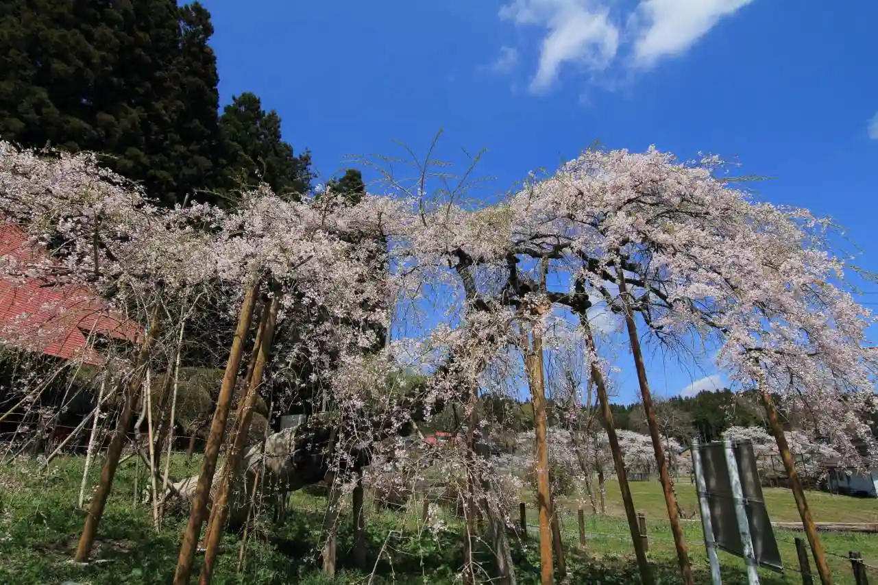 小ぶりながら樹齢は400年ともいわれるしだれ桜が