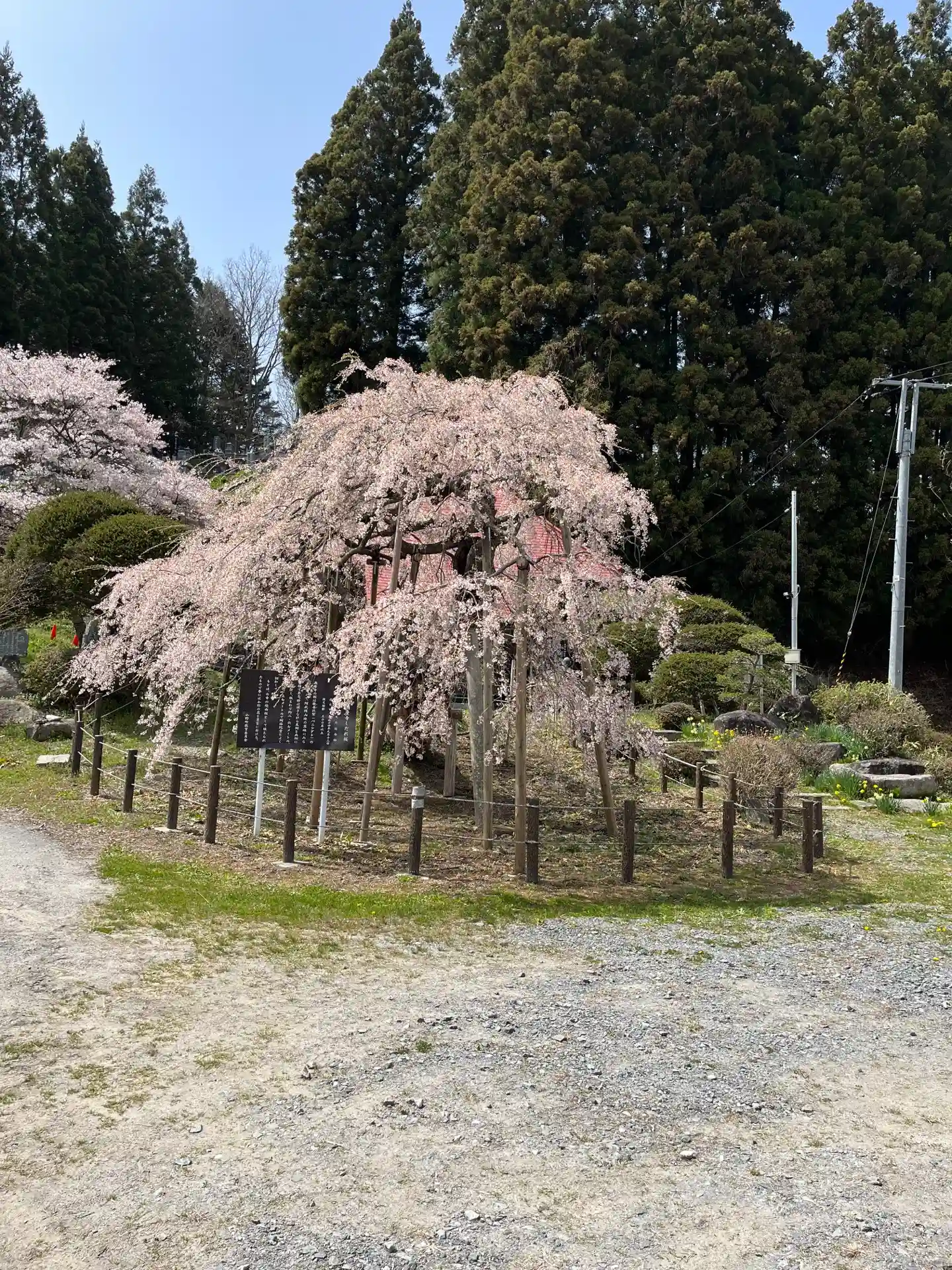小ぶりながら樹齢は400年ともいわれるしだれ桜が
