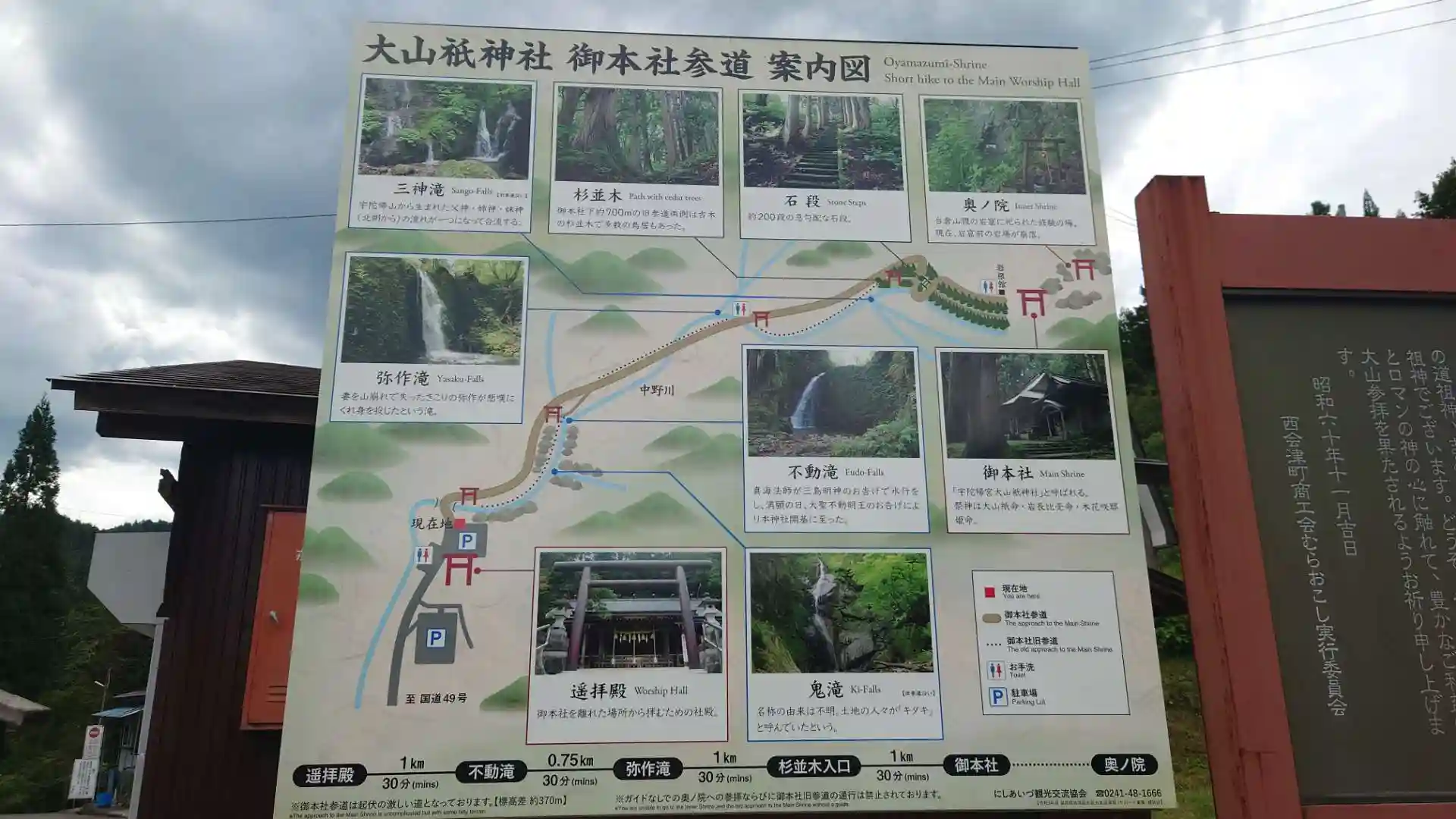 御本社(奥宮)まで登るつもりでしたが、あまりの蒸し暑さに不動滝で引き返してきました
