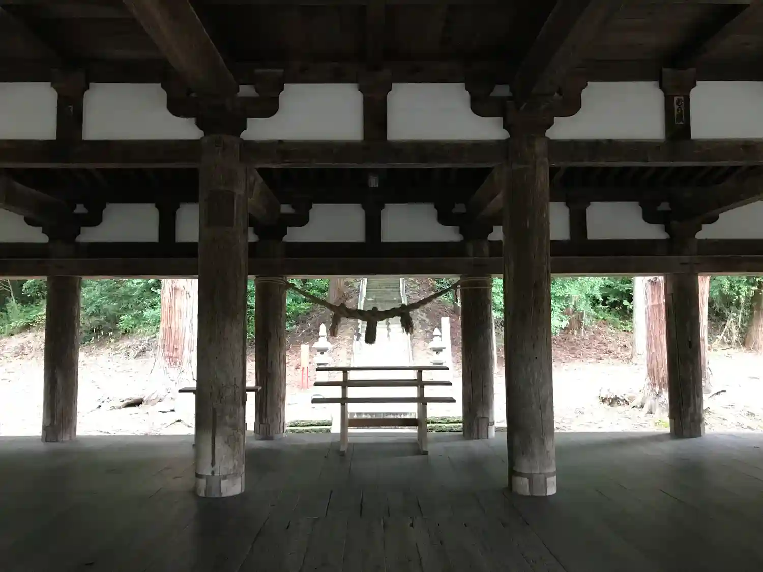 本殿から長床(拝殿)を望む