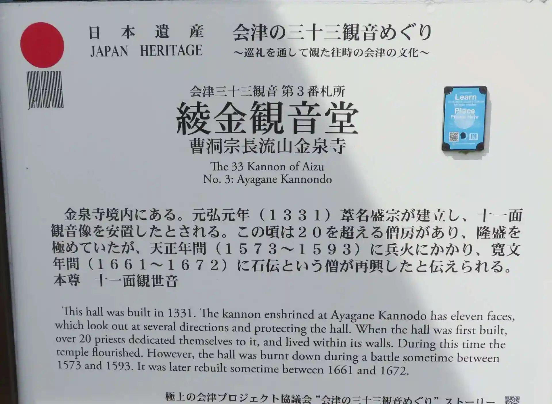 会津三十三観音巡り第3番札所の綾金観音に行ってきました。五代葦名盛宗によってに創建された金泉寺の十一面観音菩薩が安置されているそうです。隣には子安観音がいらっしゃいました。御朱印は地元の方が管理していた、地図のあった御宅のお祖母ちゃんが対応してくださいました。