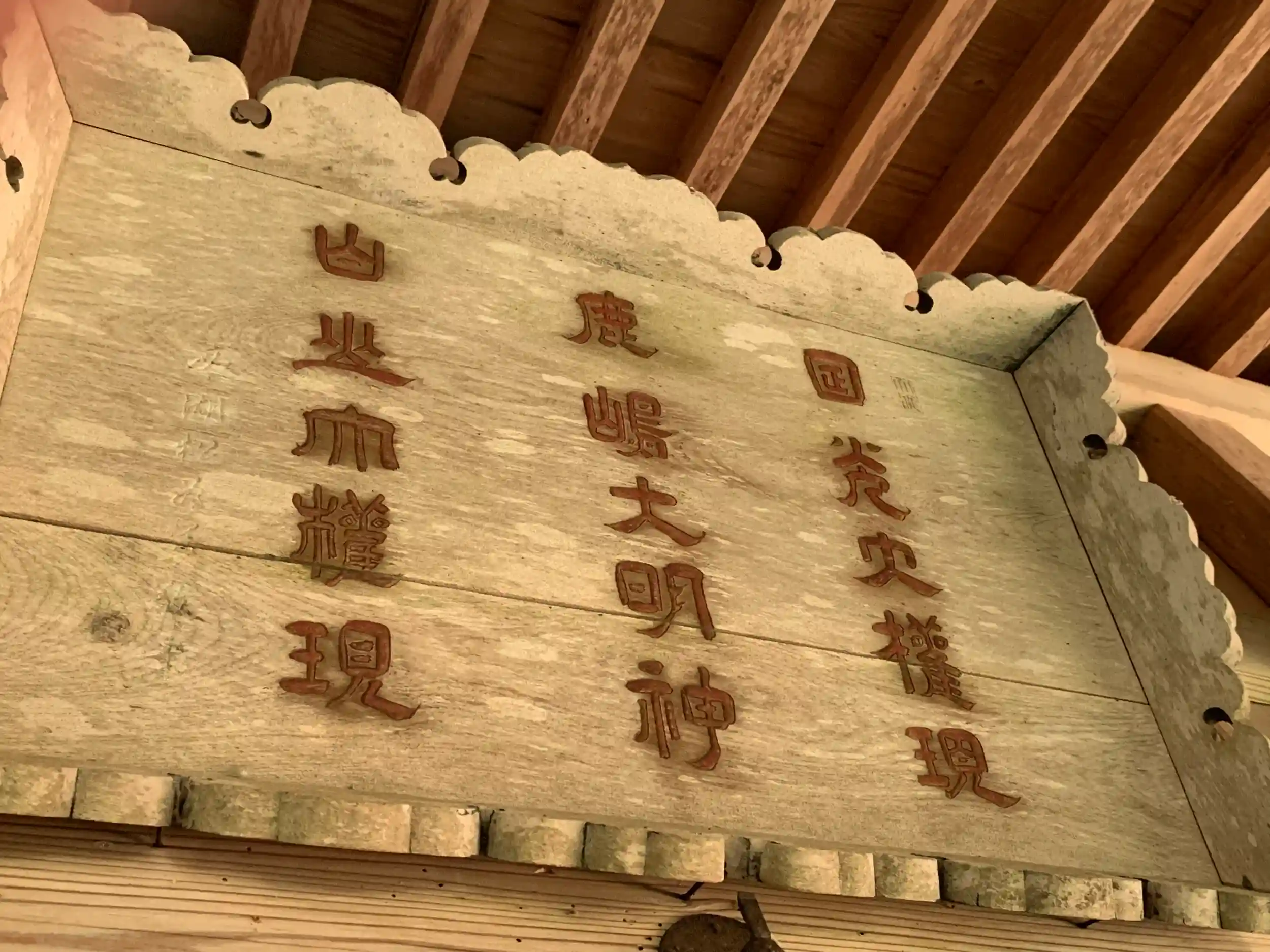 中央に鹿嶋大明神。左右に書いてある文字は読めないんですが💦日光神と白山神を指しているようです。