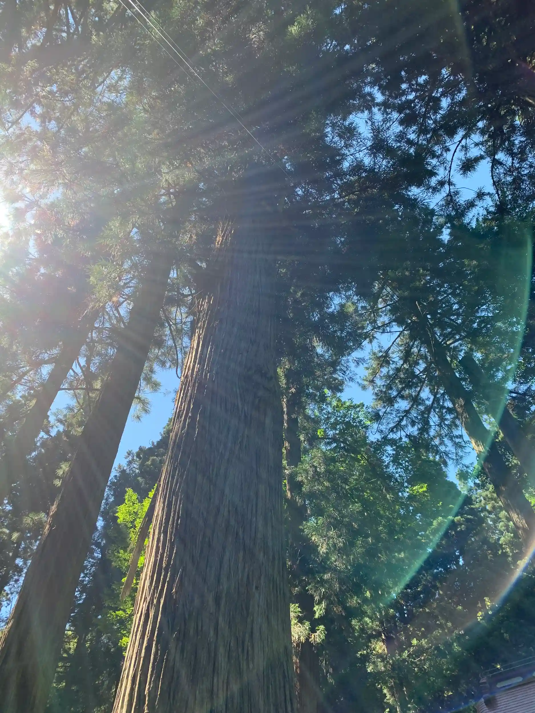 見上げると青空が隙間から見えます。