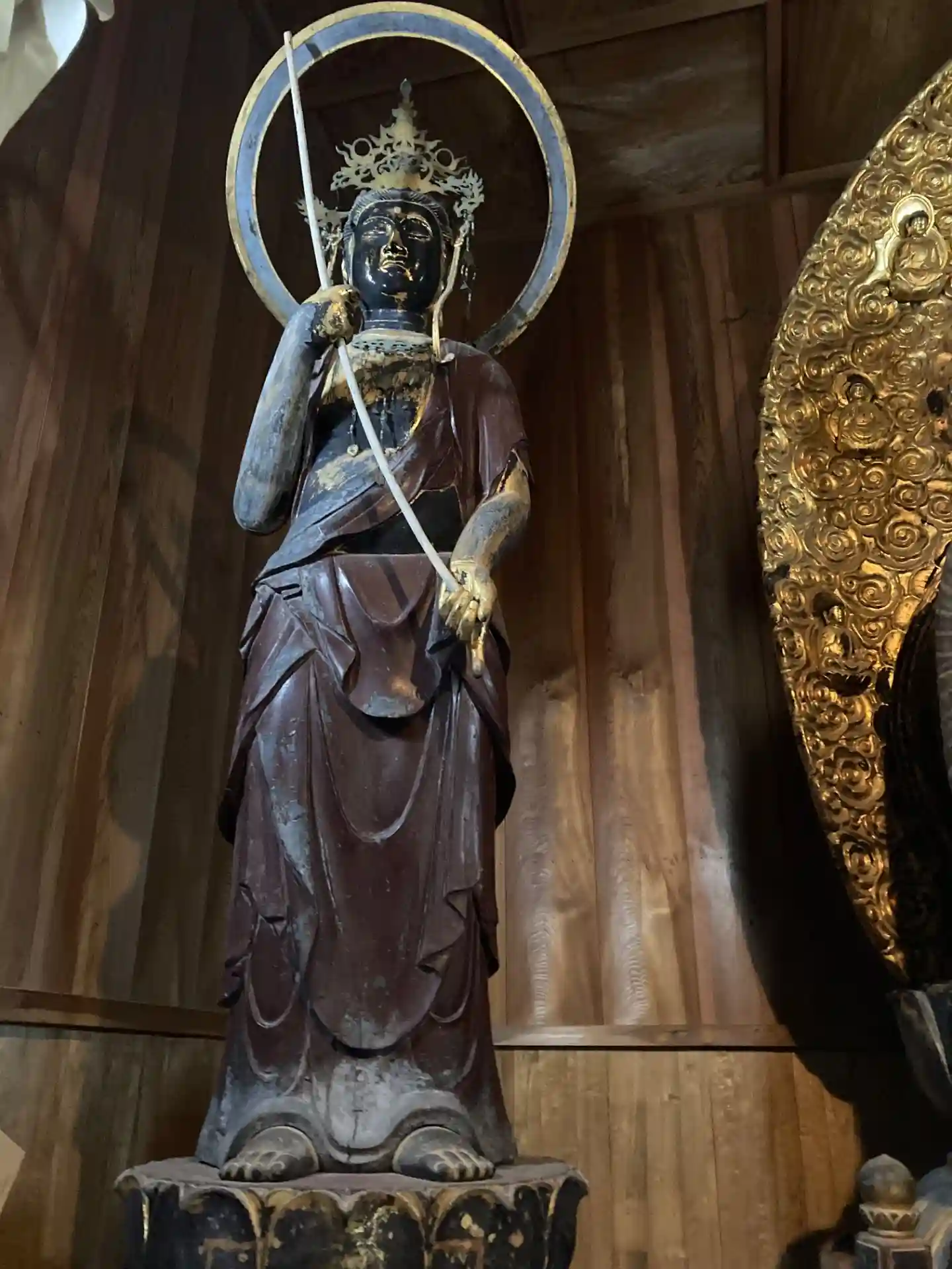 顔立ちがとても優しい薬師様で、正面はもちろんですが、横顔もとてもきれいでした。前に座って拝むとちょうど目線があい、訪れる人々の願いを聞き入れて下さっている様に感じます。拝観の際は、是非前に座って拝んでみて下さい。