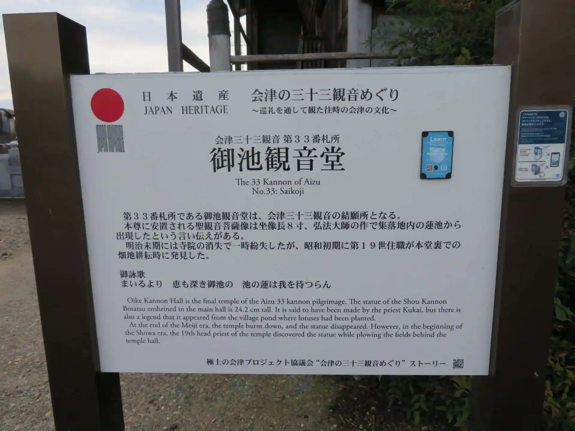 会津三十三観音第33番札所の御池観音にいってきました。御本尊は、聖観音菩薩で、その昔池の中から出たものと伝わっています。