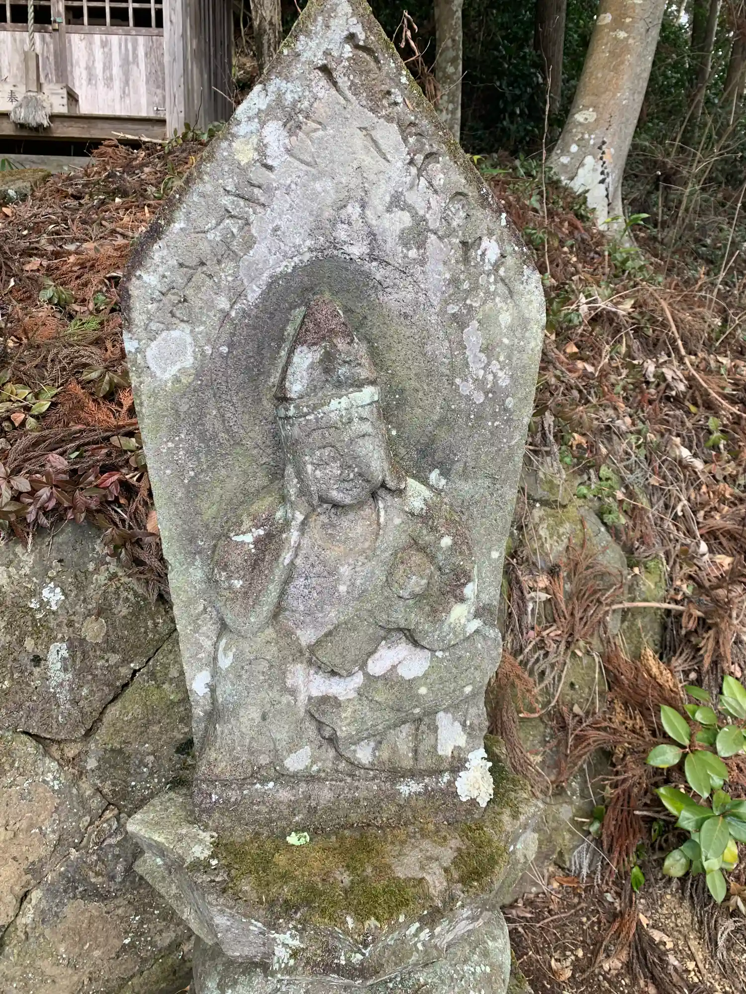 右側にある石標はマリア様に見えてしまう。