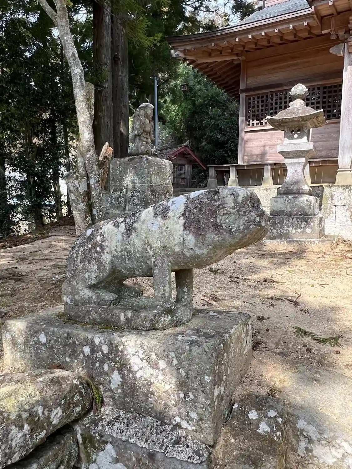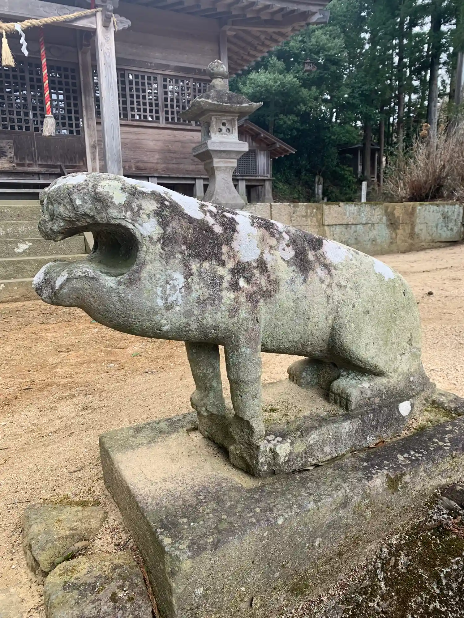 奥に見えますね。例の狛犬。