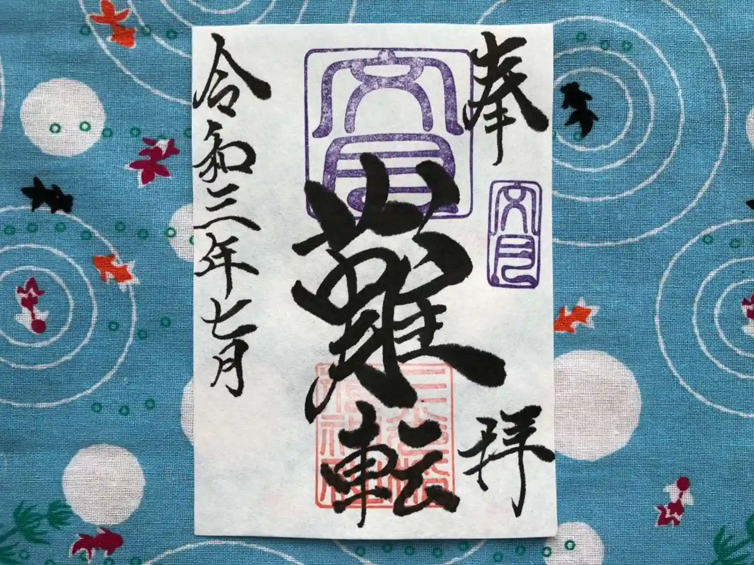 文月の『縁』御朱印は、社印は朱色・文月印は紫色・墨書きは、