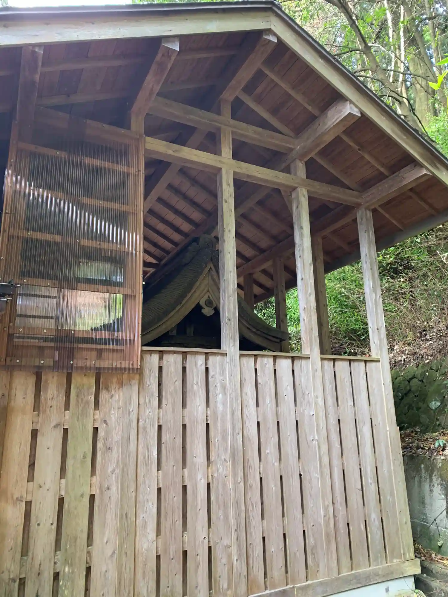ここの向拝にも穴が開いてる。
