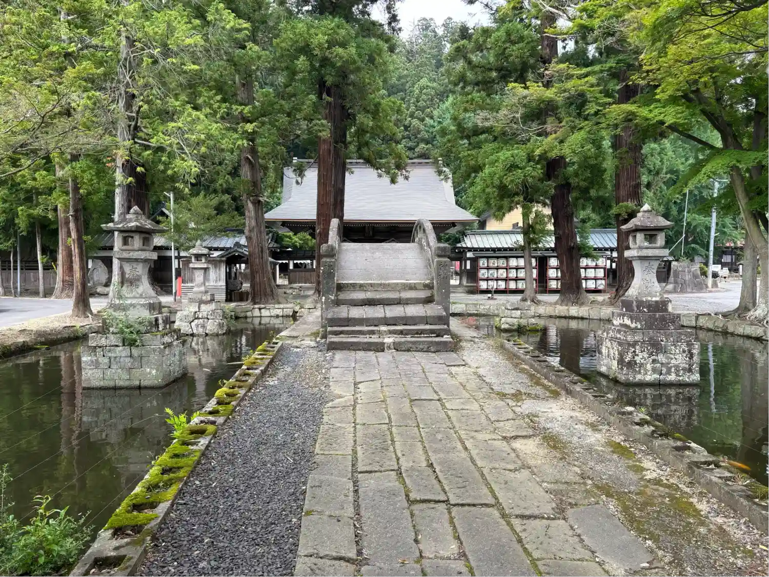 両側を水路に囲まれた長い参道、