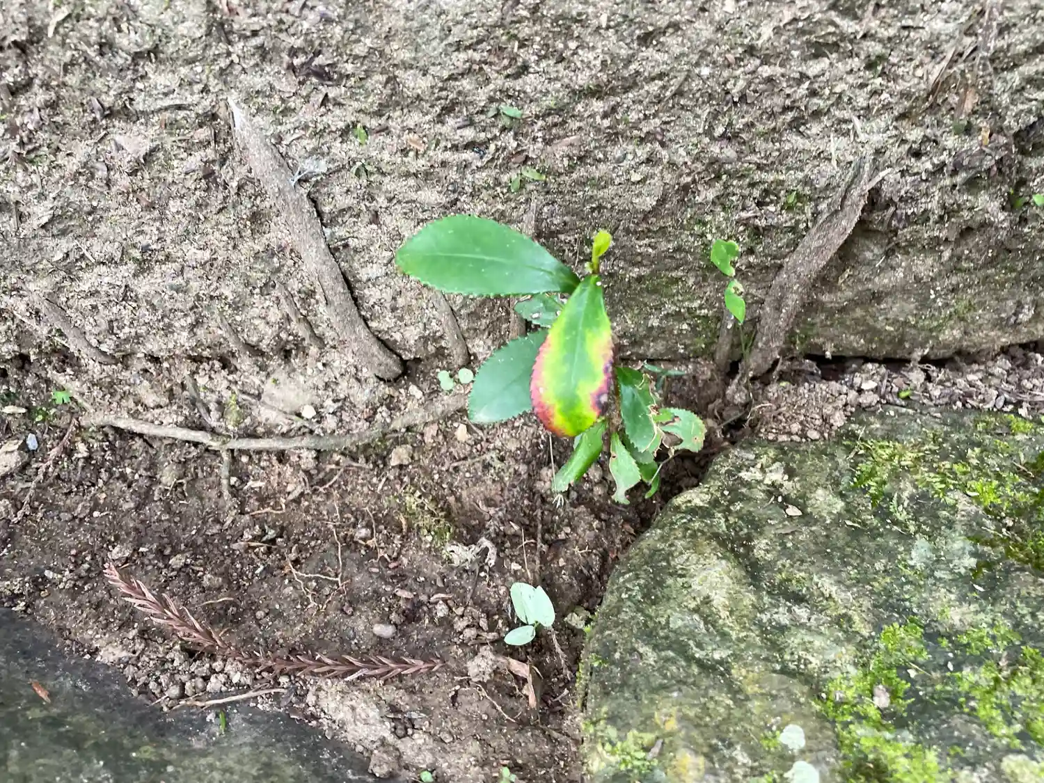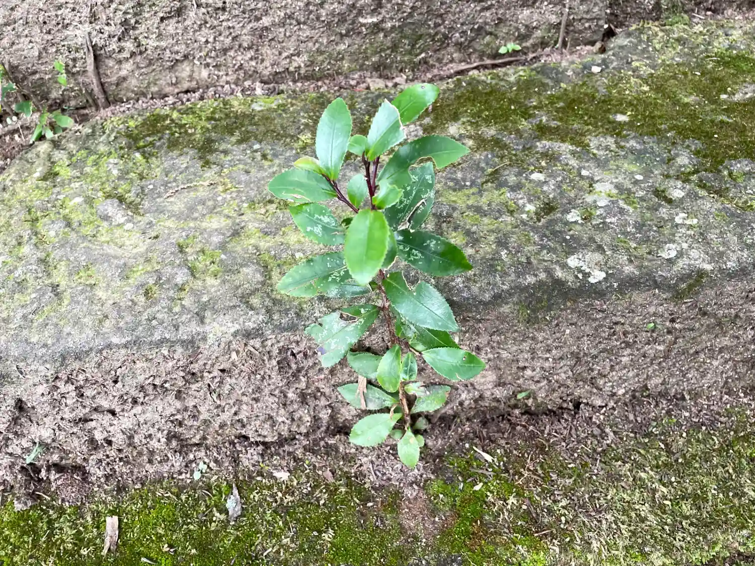 石段の隙間に自然に生えてきた榊
