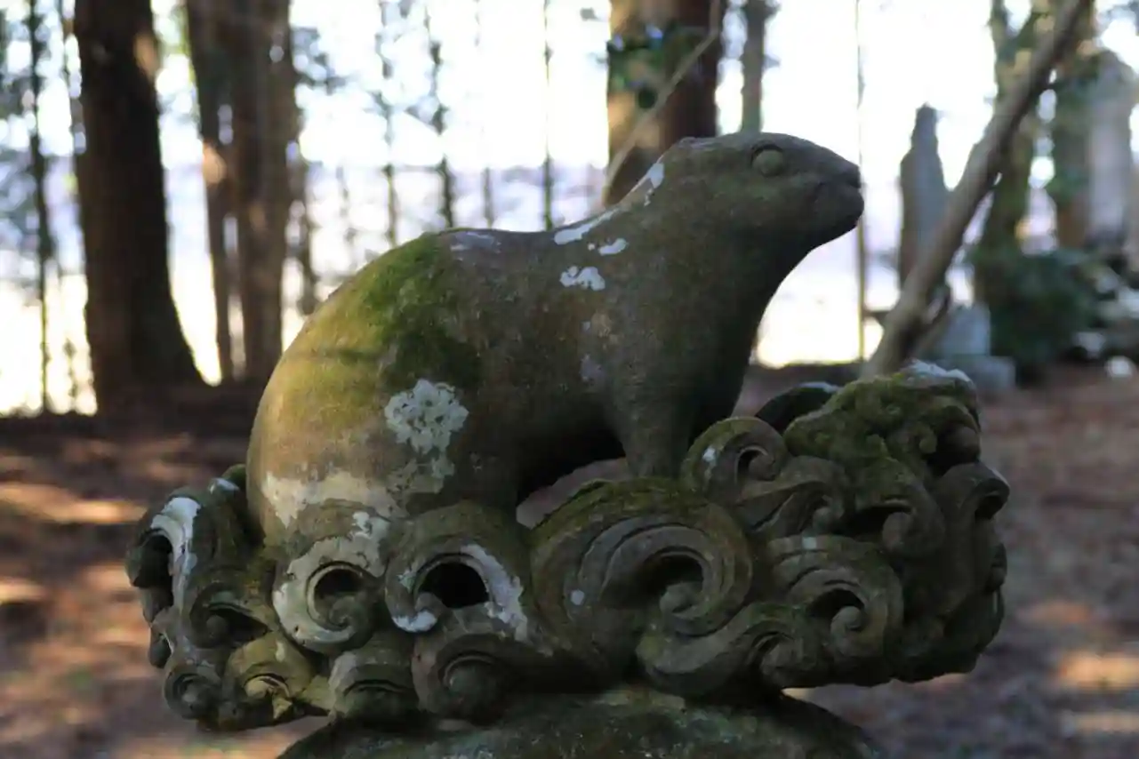 沢井八幡神社にある「波乗り兎」。この像の台には、