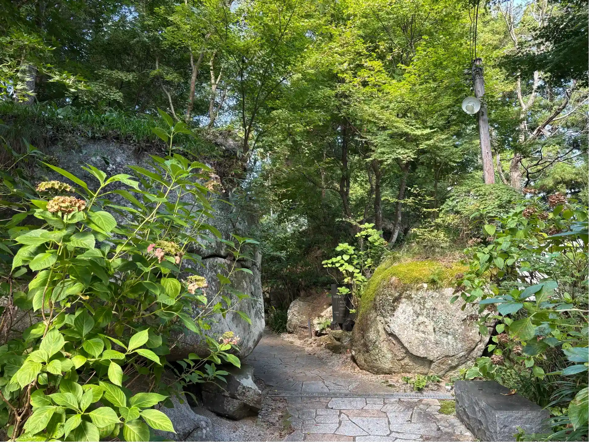 紫陽花 桜 巨石