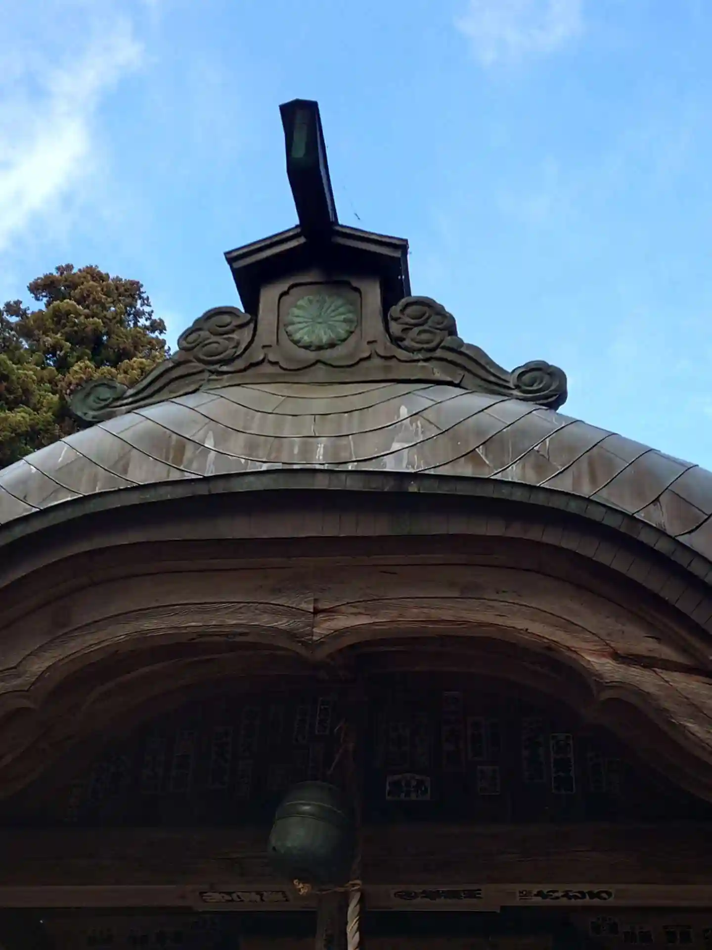 拝殿屋根には菊の御紋が。